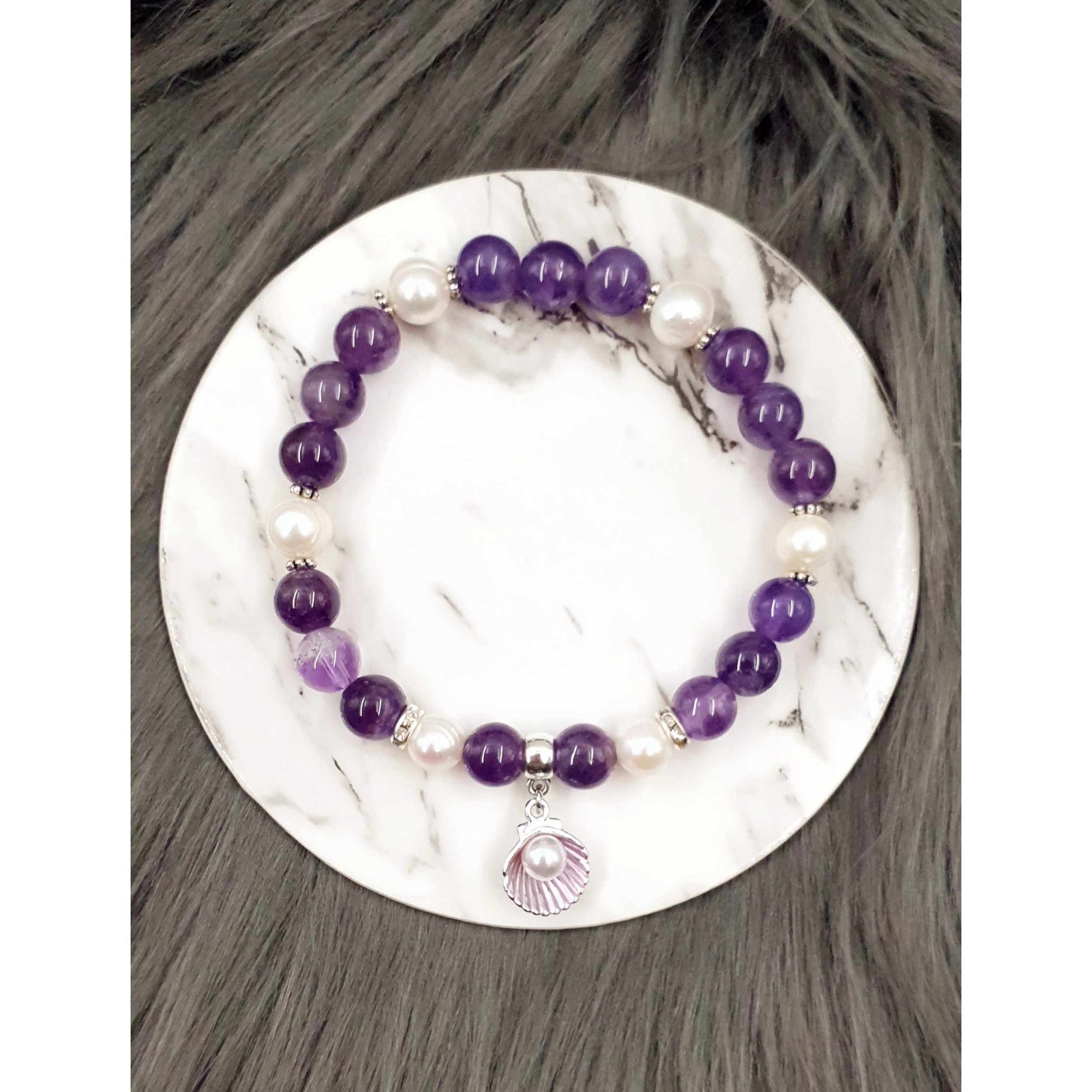 Ametiszt álom kagyló medálkás ásványkarkötő