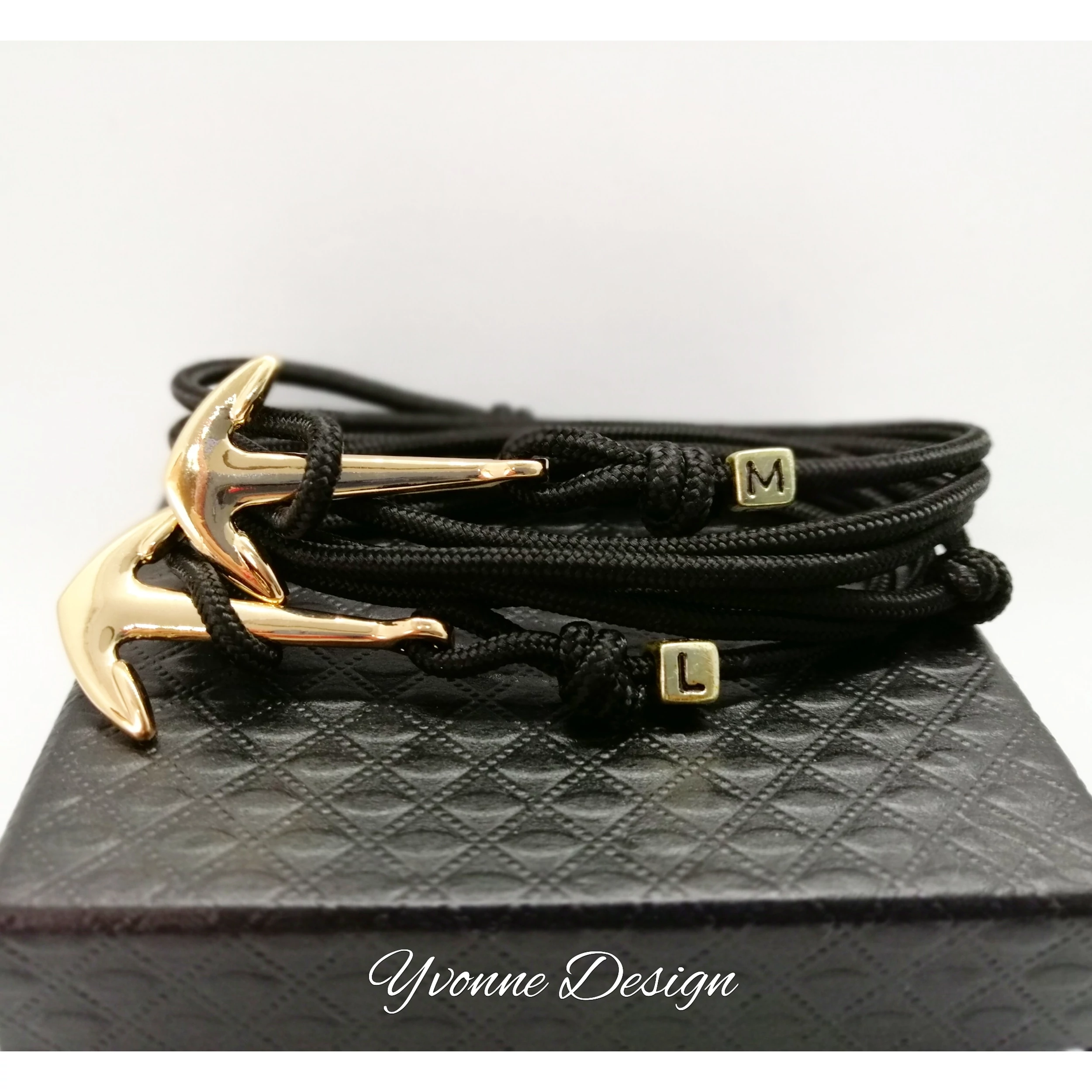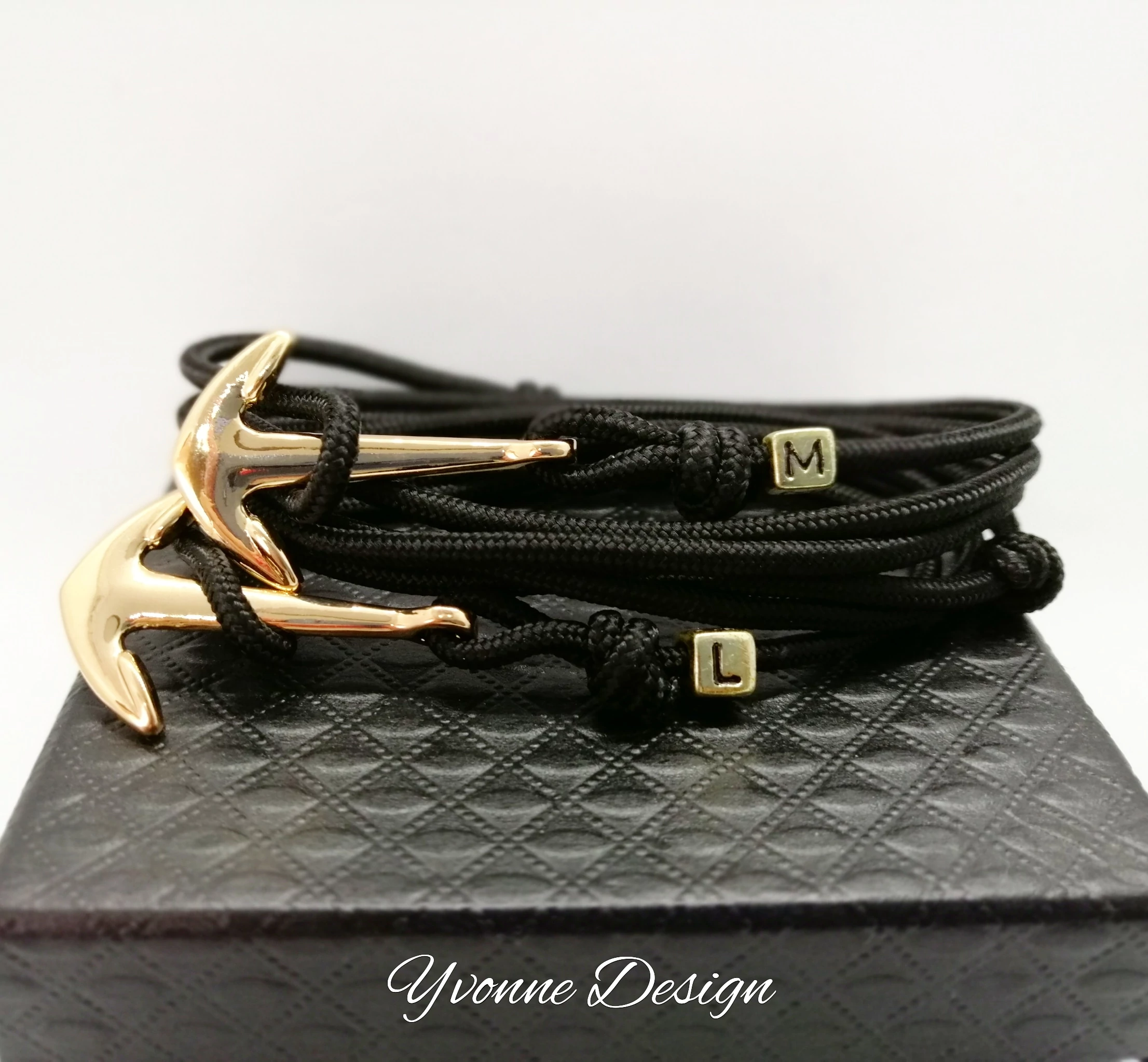 Ez az egyedi horgonyos karkötőpár, parakord zsinórból készült, csomózásos technikával.A karkötőpárhoz egyedi betűket rendelhetsz, hogy teljesen személyre szabottan készüljön a részetekre. A csomók csúsztathatók.