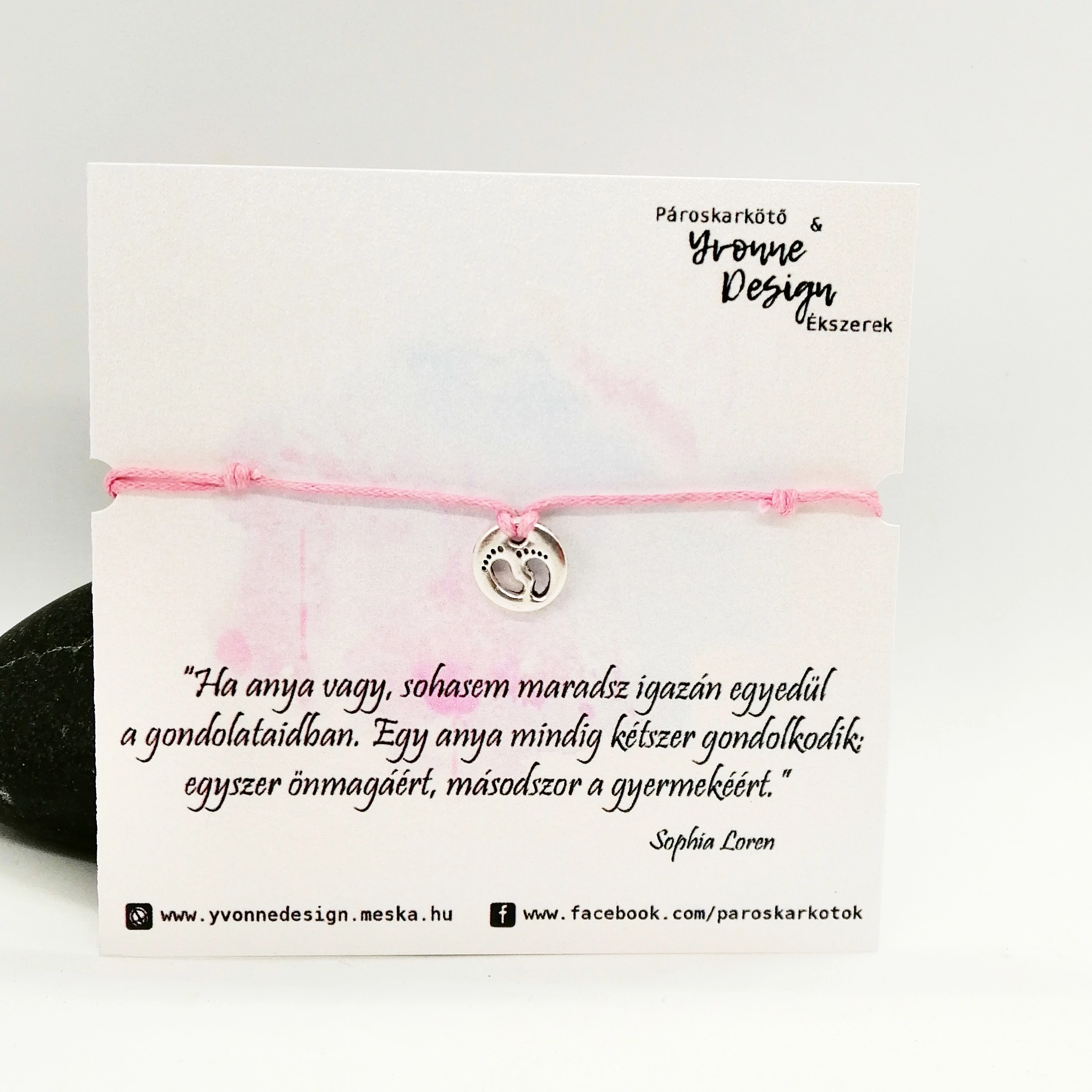 Gyönyörű tappancs medálos zsinór karkötő csúszócsomókkal. Az ár  egy darab karkötőre vonatkozik + az idézetes kártya.