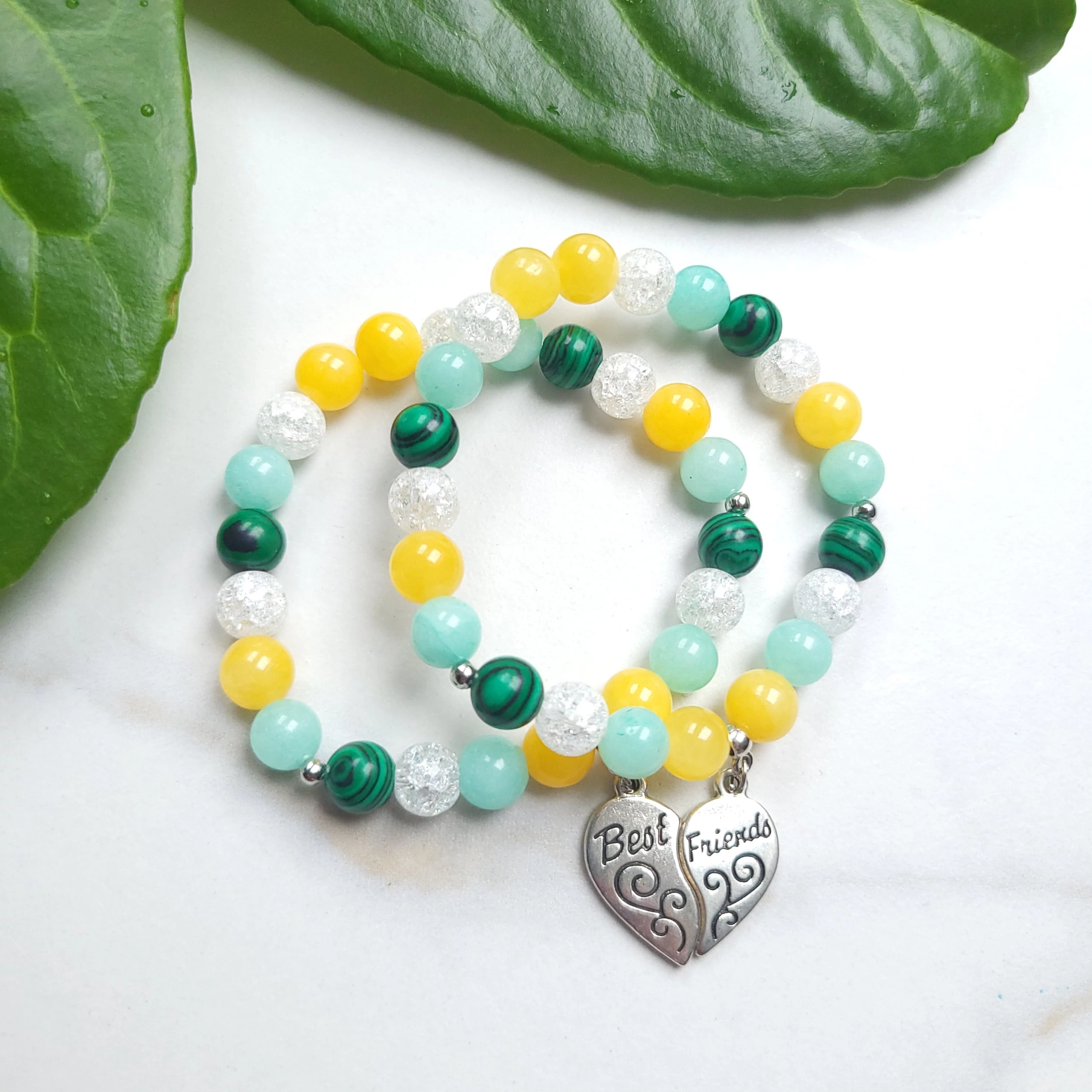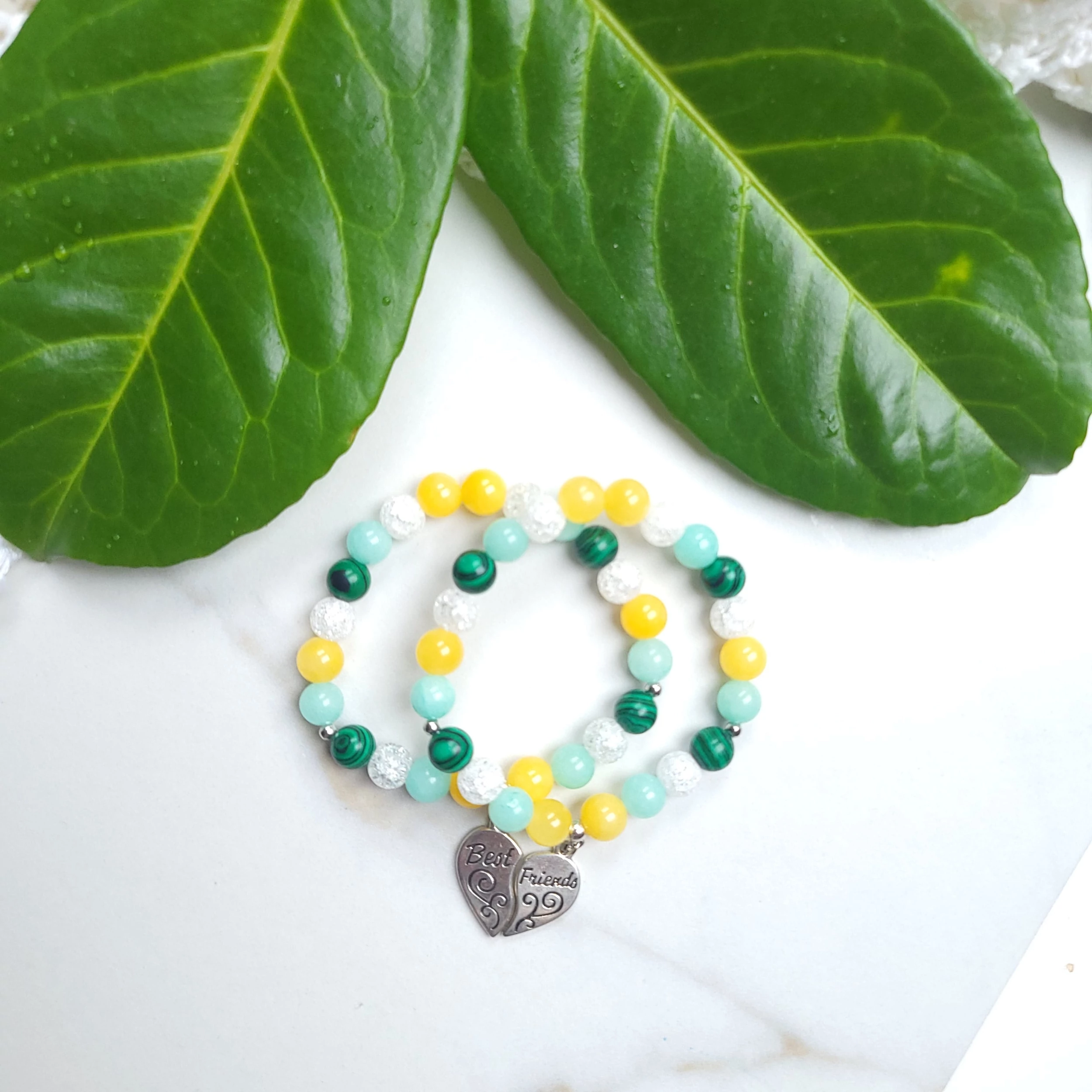 Barátság pároskarkötő Best Friends szív medállal - malachit
