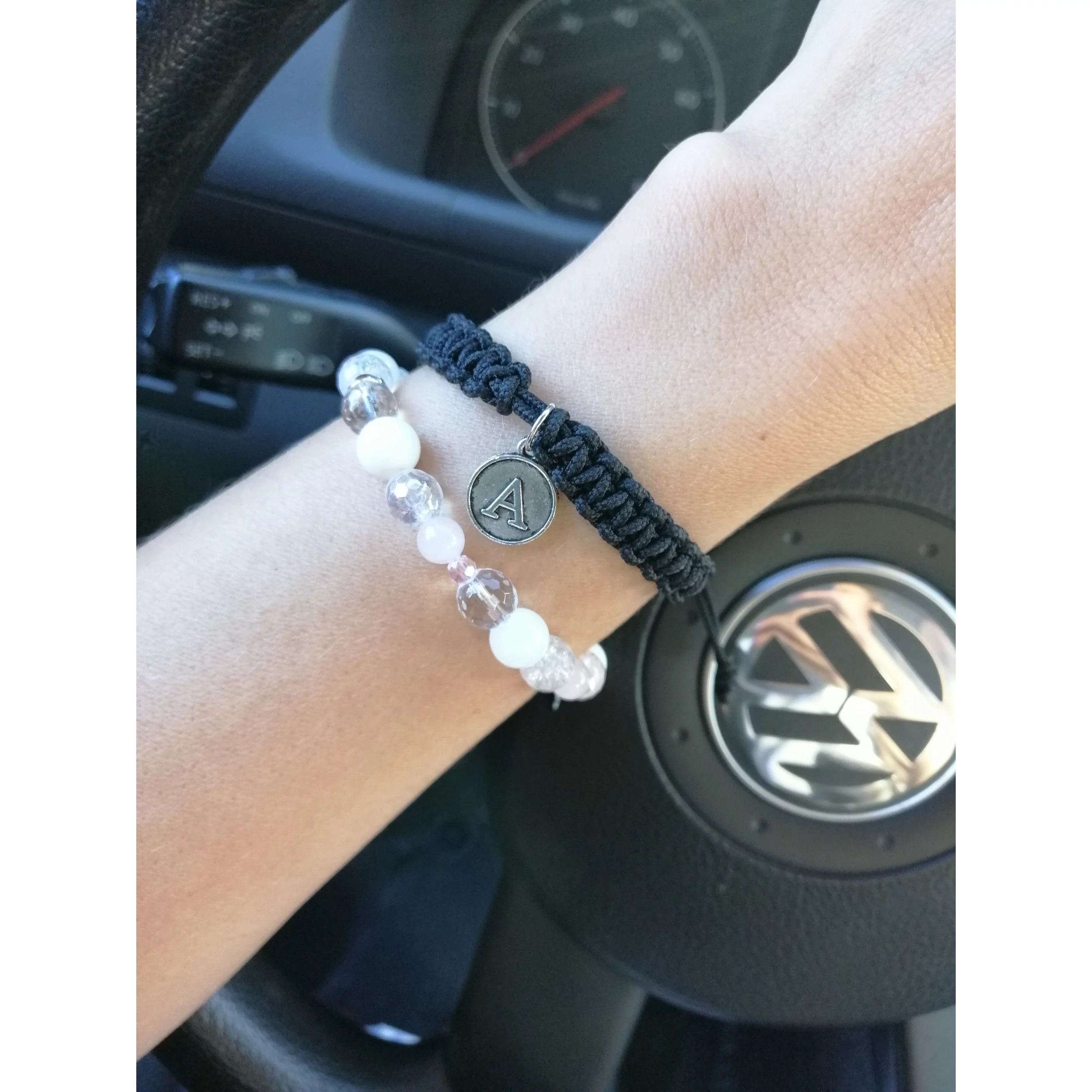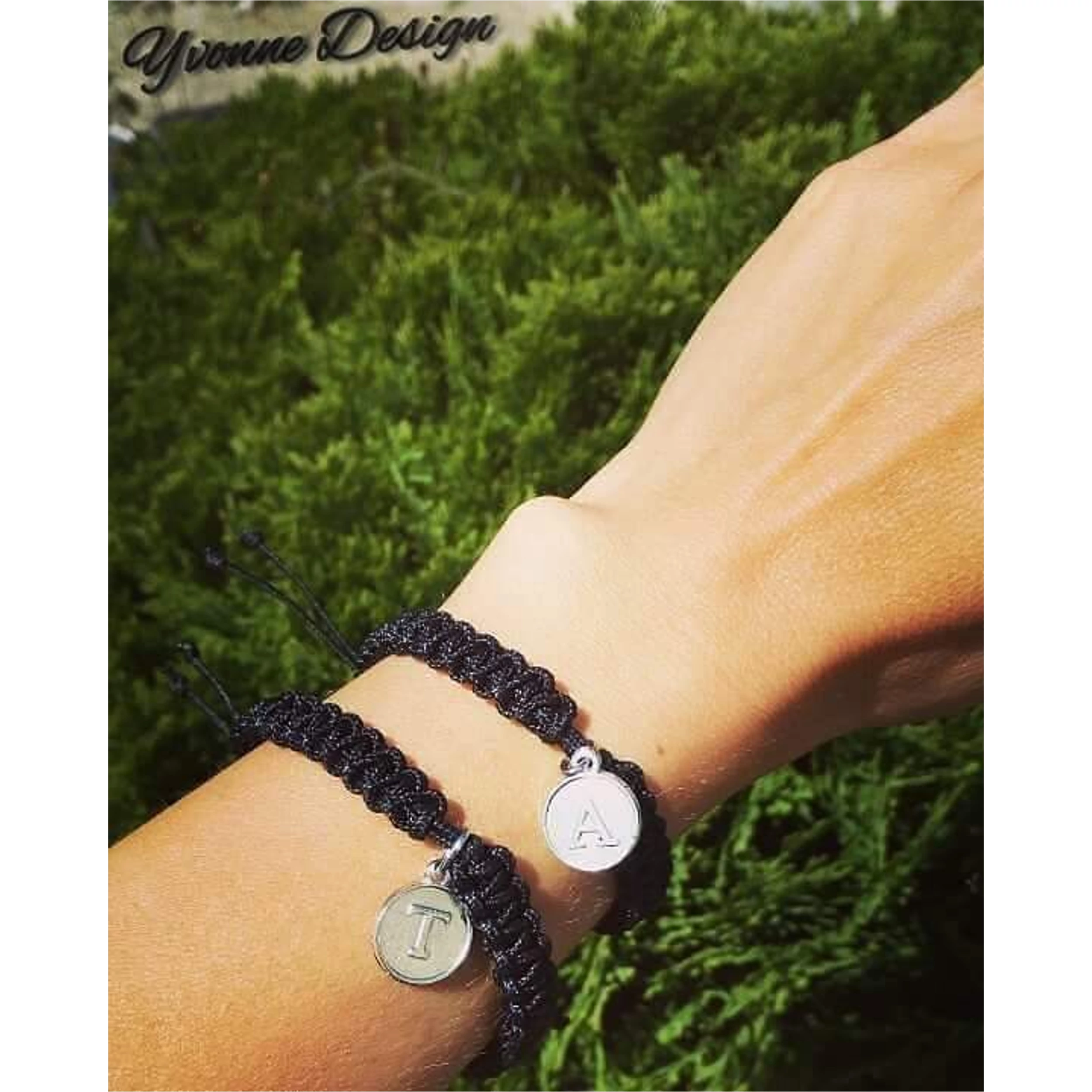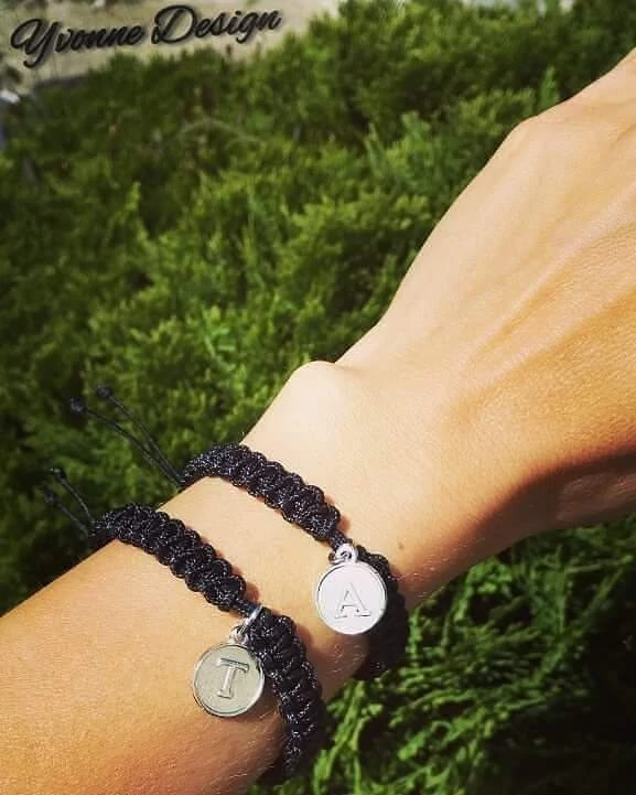 Teljesen egyedi,  betű medálos szerelmi vagy barátság karkötőpár, mely vékony parakord zsinórból font. A zsinór és a betűk is kopásállóak. Az ár egy pár karkötőre (2db) vonatkozik.
