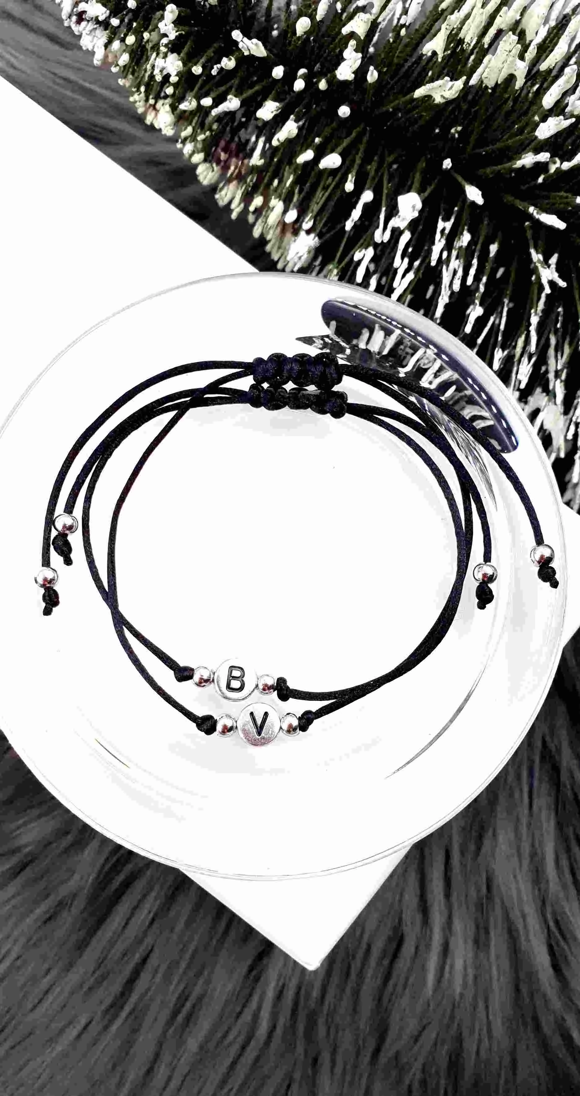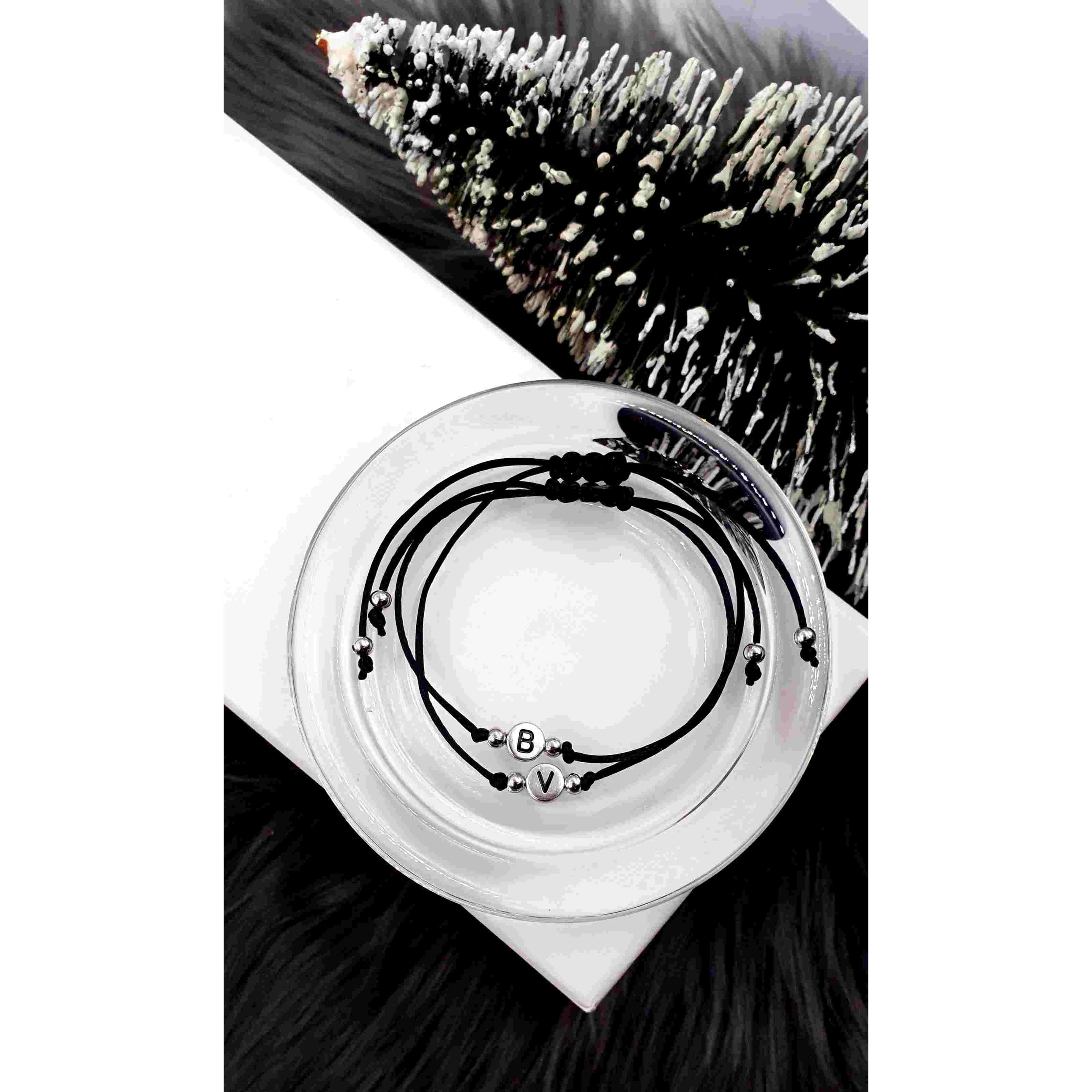 Dupla betűs szerelmi zsinór páros karkötő. Ez az egyedi karkötő pár, vékony zsinórból készült, csomózásos makramé technikával.  A betűket egyedileg rendelheted hozzájuk, így személyre szabottan egyedi karkötőpár készül részetekre.