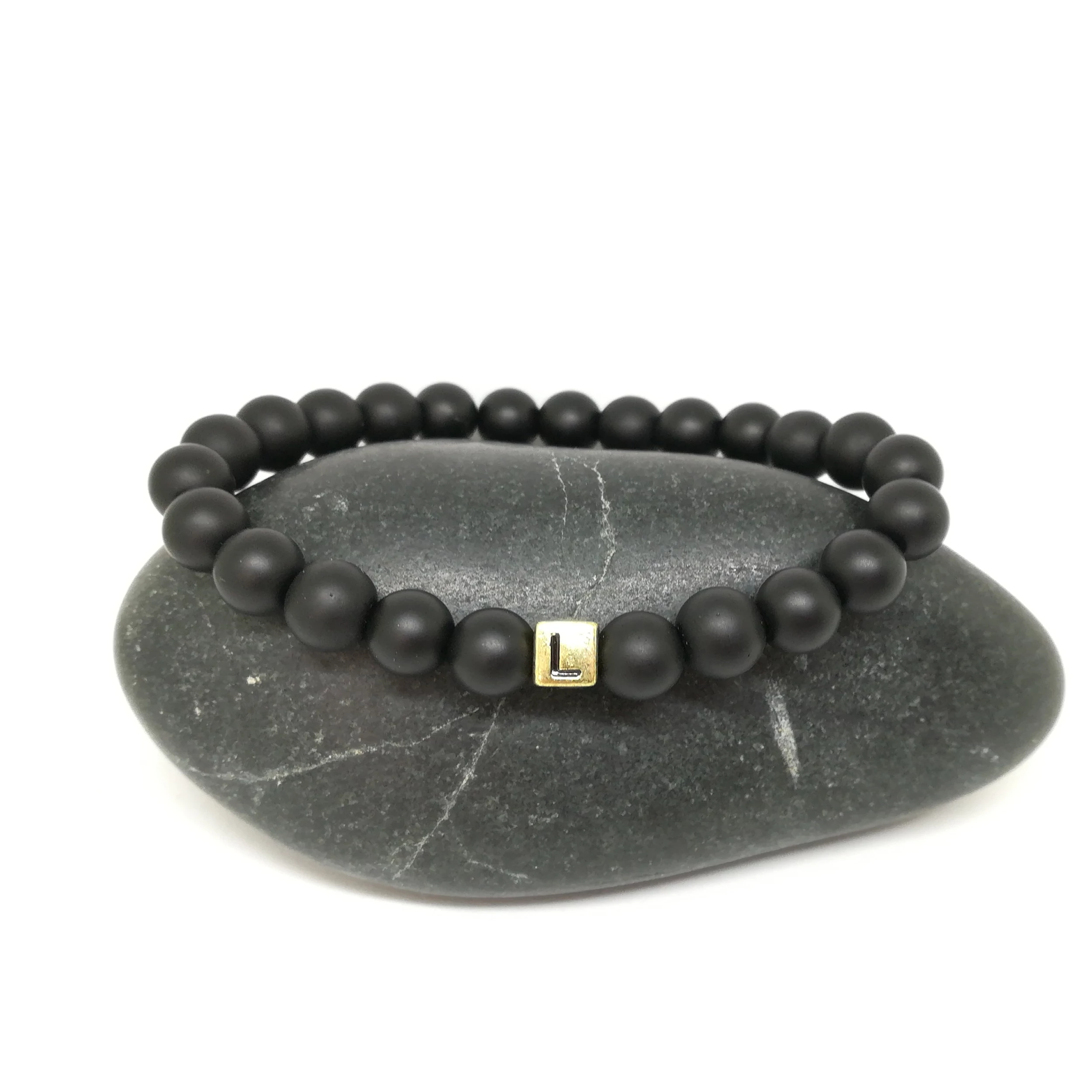 Fekete ónix karkötő betűvel (uniszex)