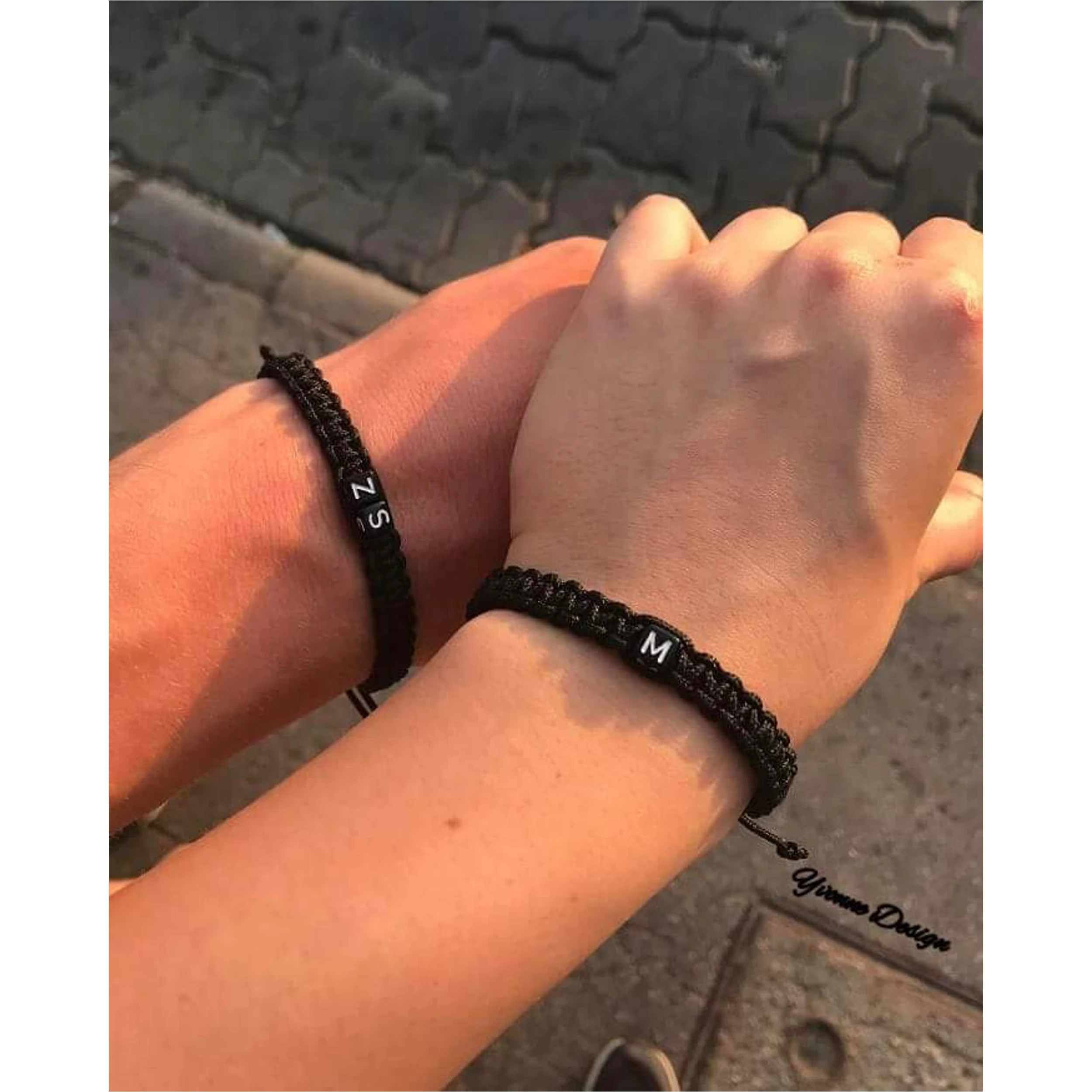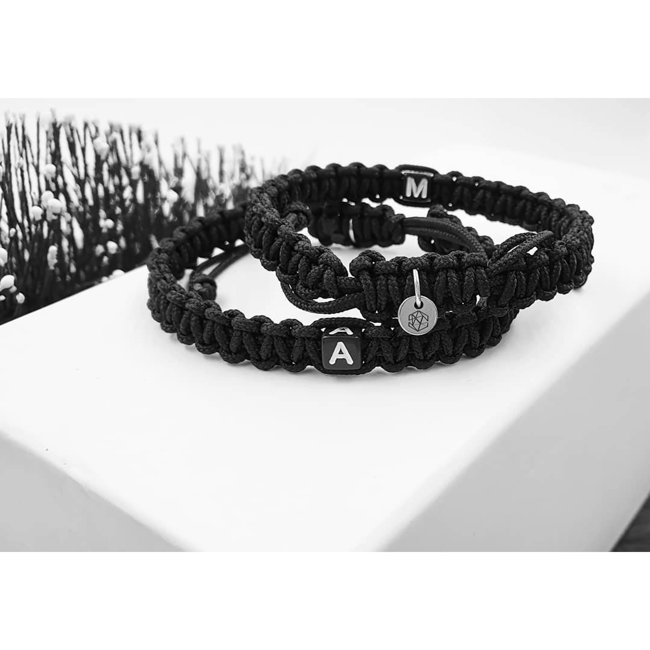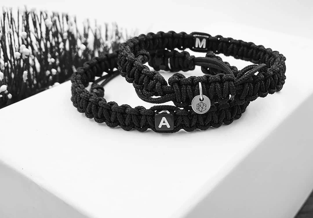 Teljesen egyedi,  betűs szerelmi pároskarkötő, mely vékony parakord zsinórból font fekete betűkkel.  A zsinór és a betűk is kopásállóak.