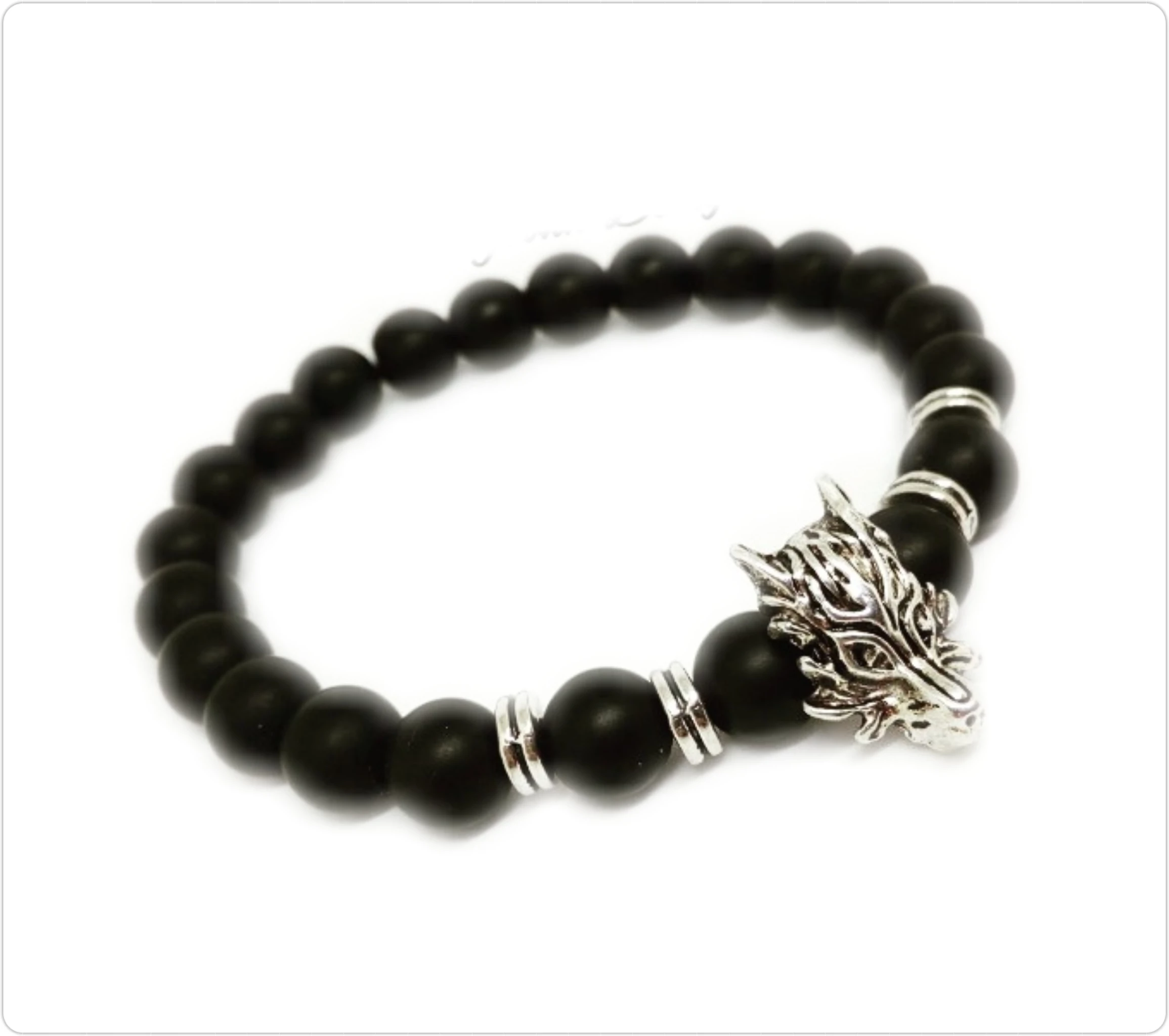 Ez egy gyönyörű egyedi tervezésű 8 mm átmérőjű gyöngyökből készült ónix ásványkarkötő.