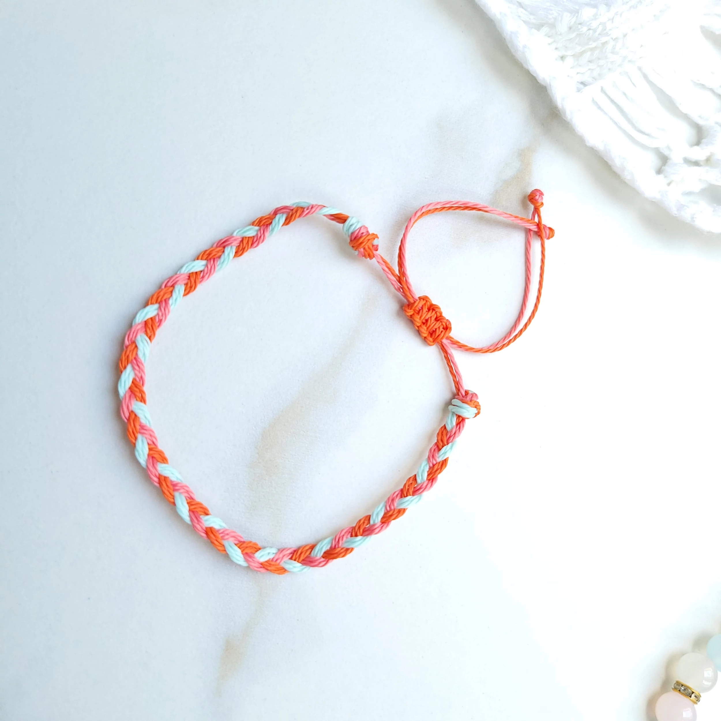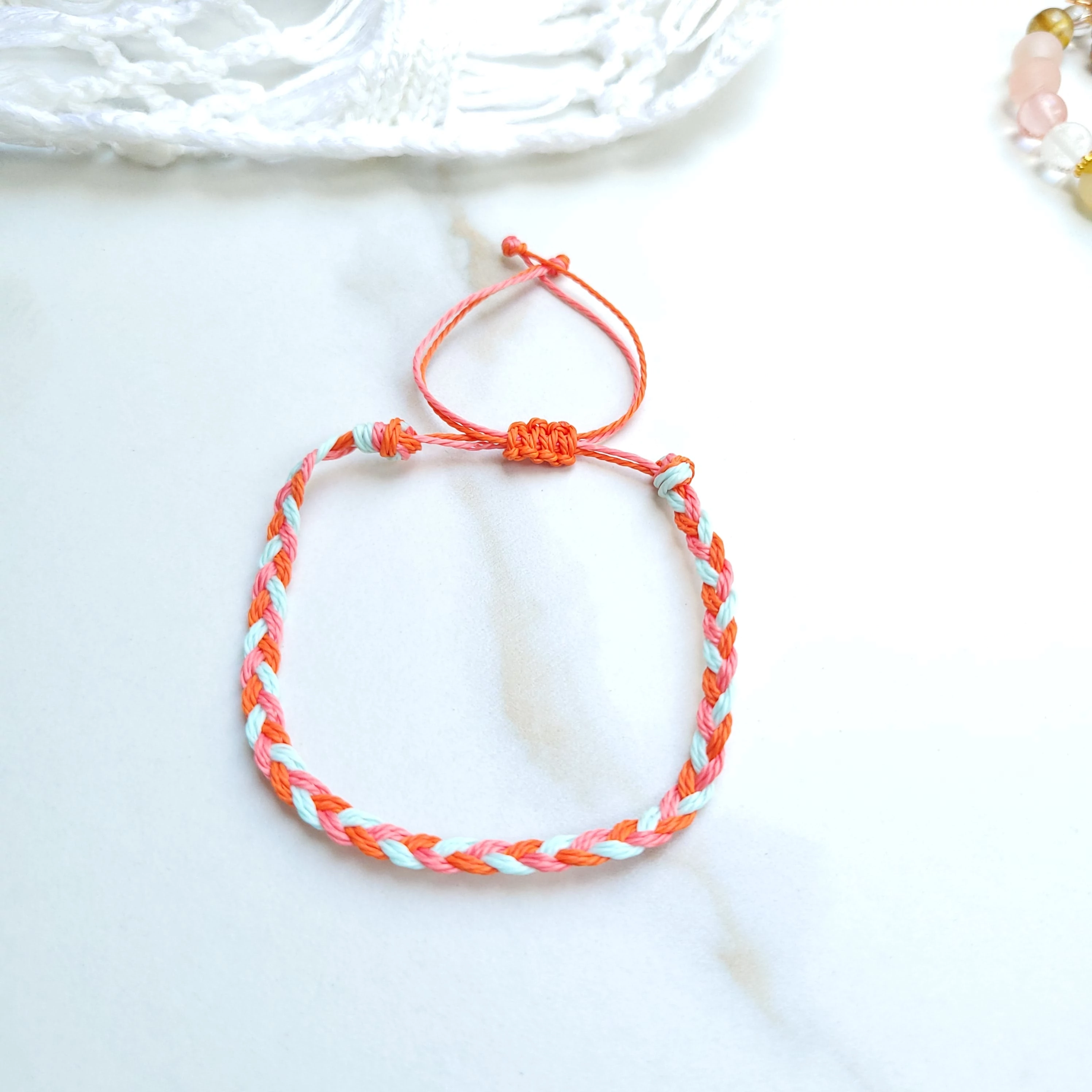 Uniszex fonott zsinór karkötő piros színben.  A méretük állítható 15 cm-24 cm között.
