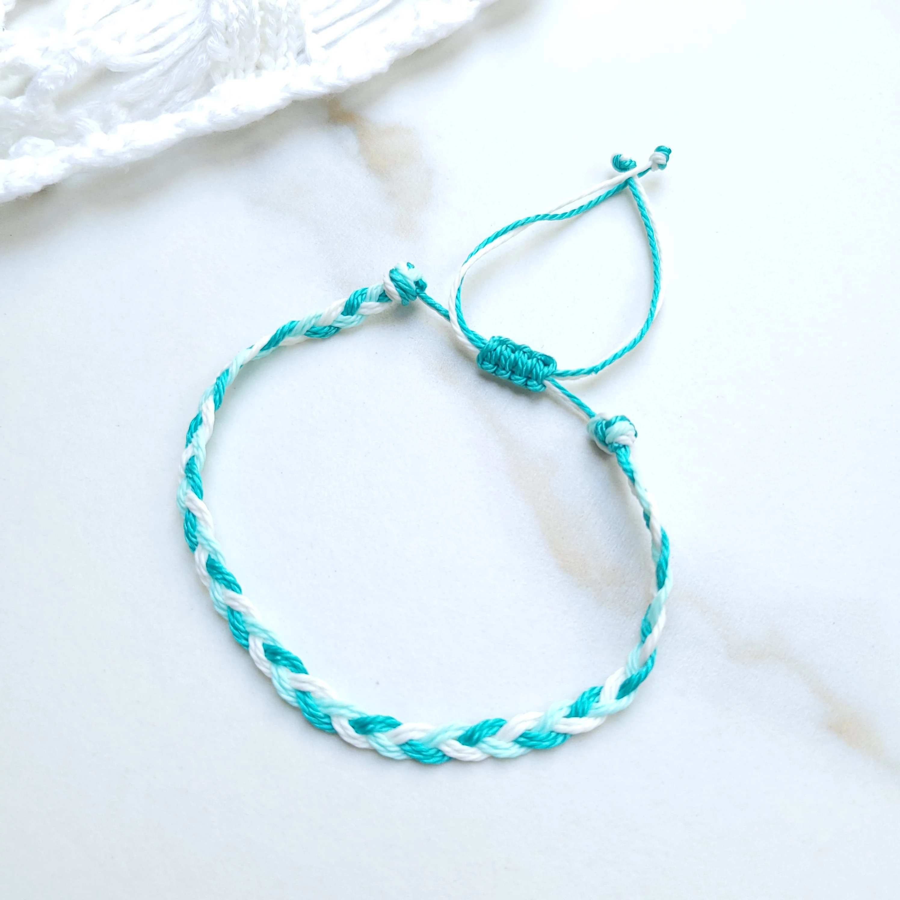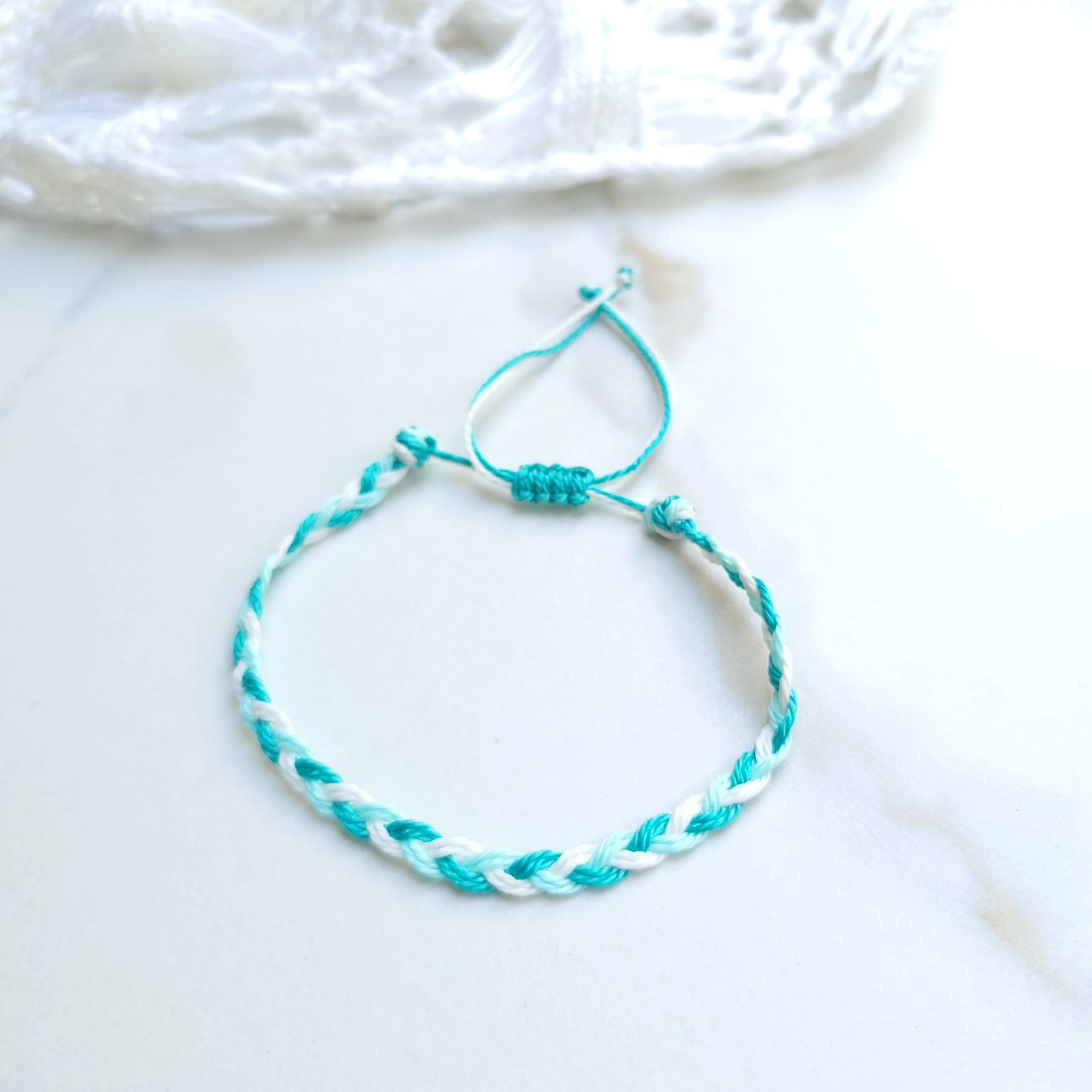 Uniszex fonott zsinór karkötő türkiz színben. A méretük állítható 15 cm-24 cm között.