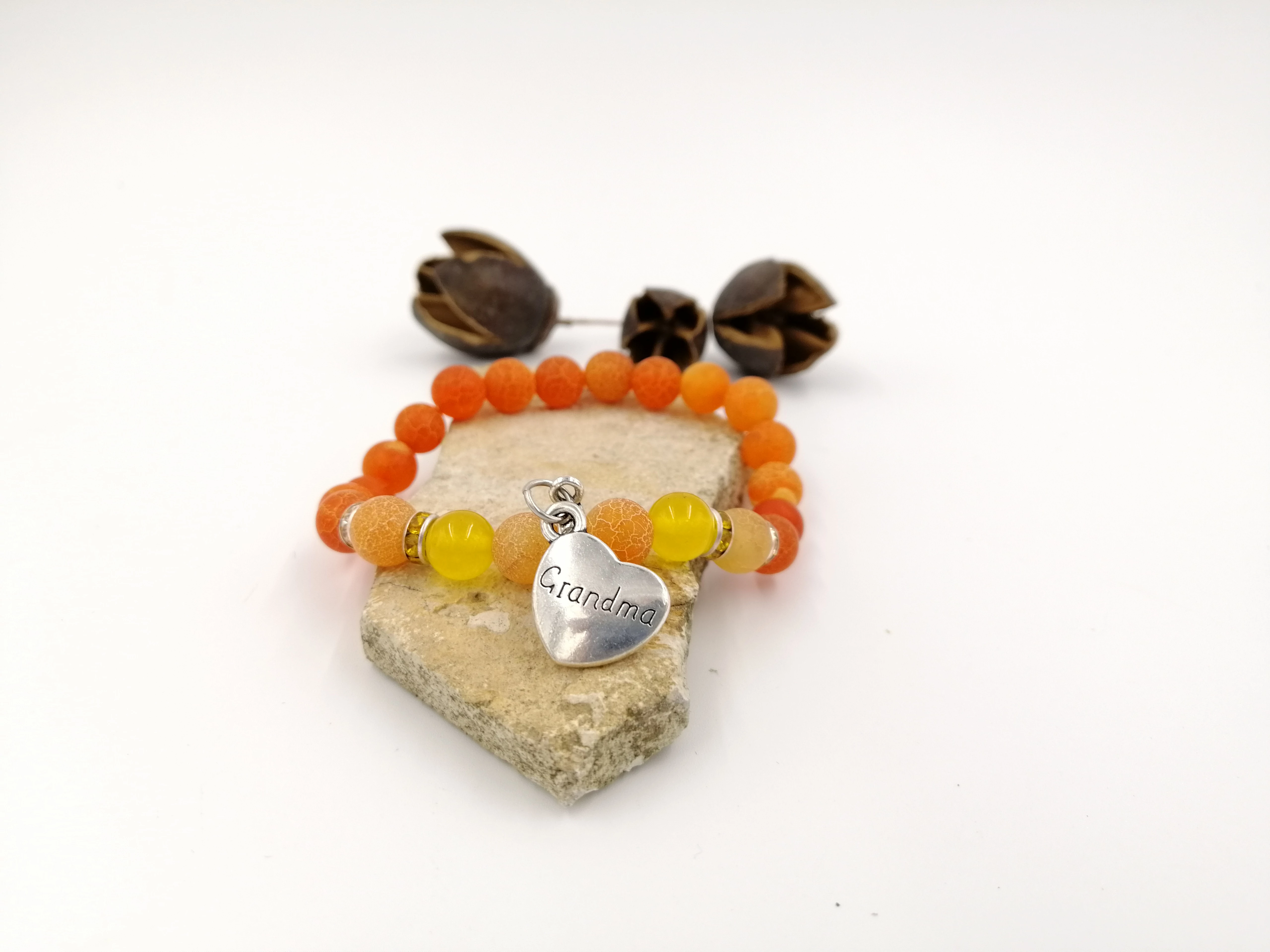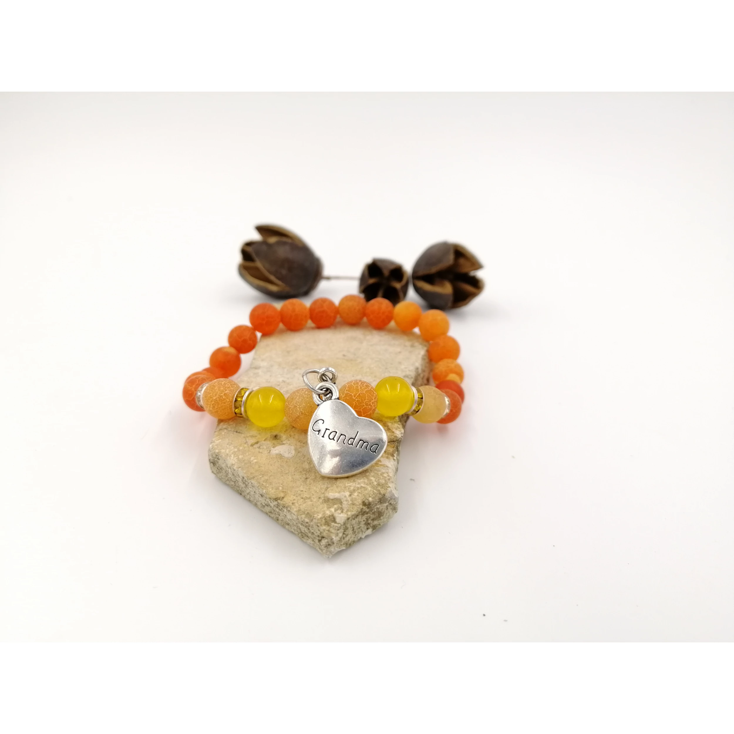 Gyönyörű egyedi tervezésű színezett matt achát ásványokból készült "Grandma" (Nagymama) feliratos karkötő.