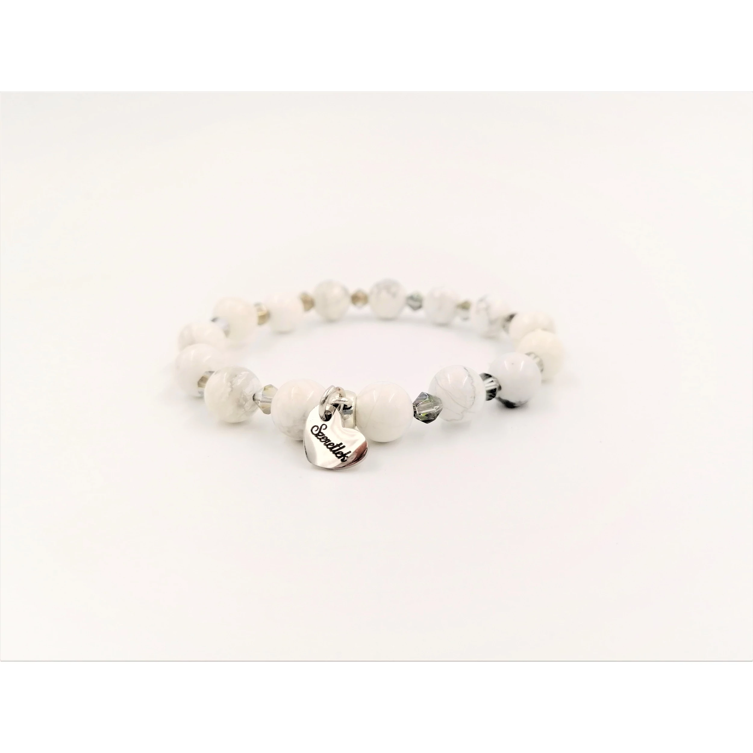 Gravírozott "Szeretlek" szivecske medálos ásványkarkötő