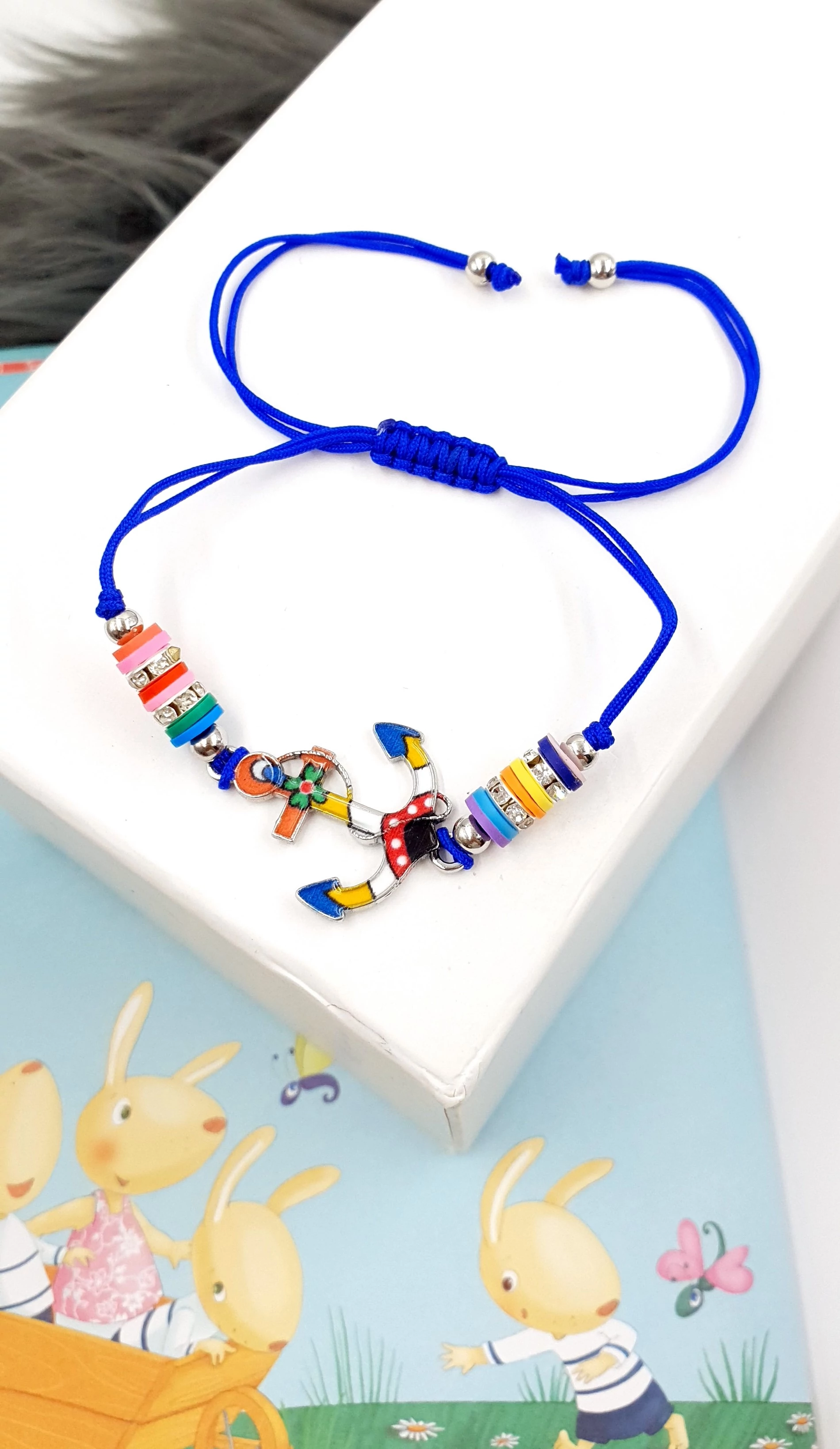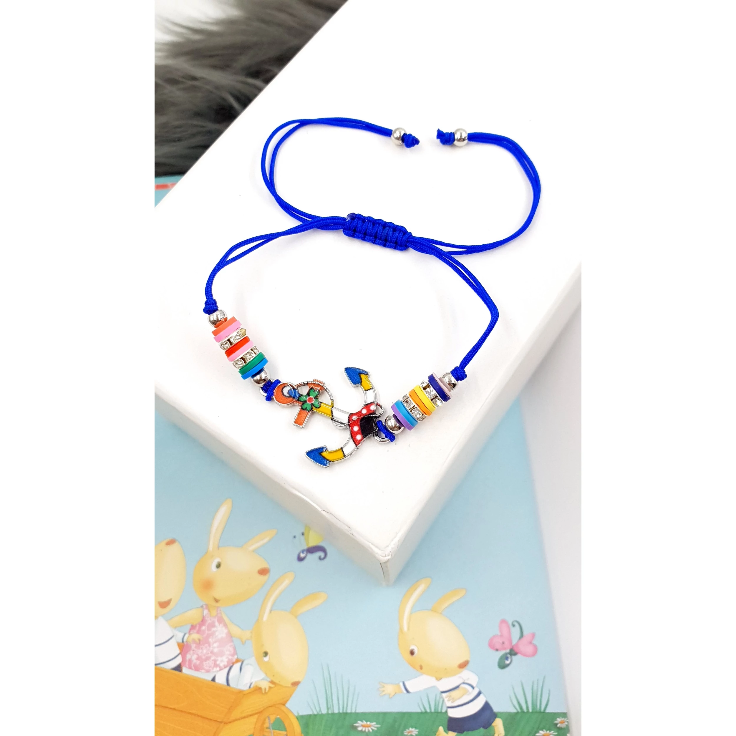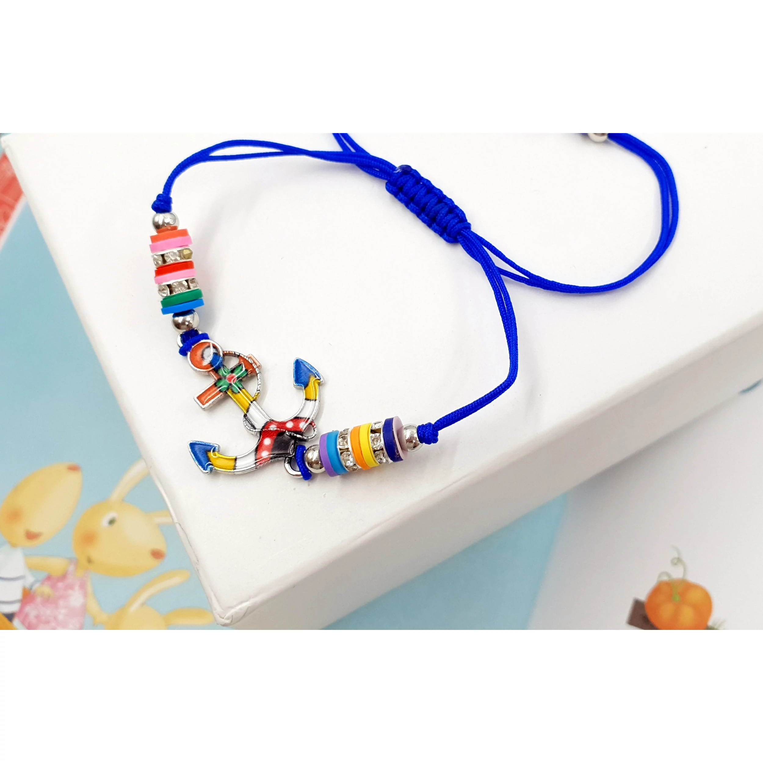 Gyönyörű horgony  medálos gyerek zsinór karkötő, a mérete a behúzószárakkal állítható.