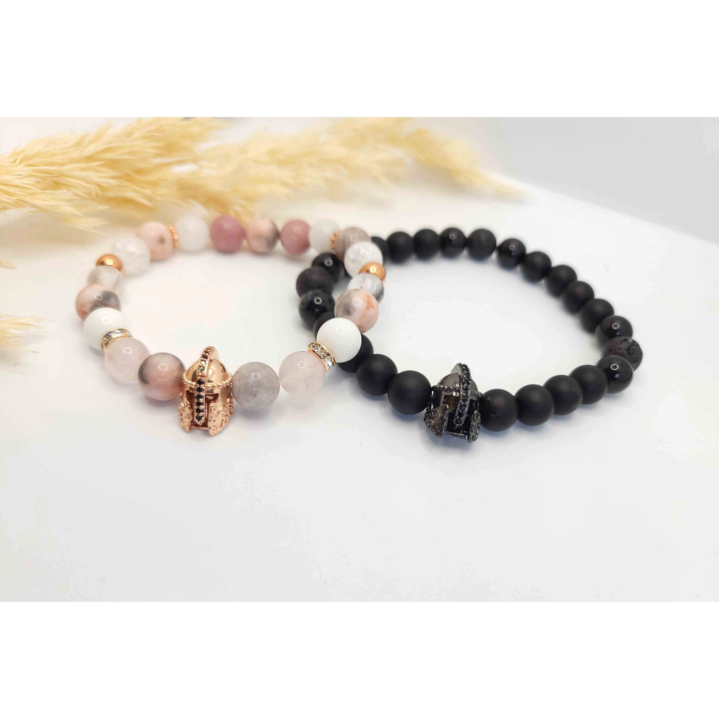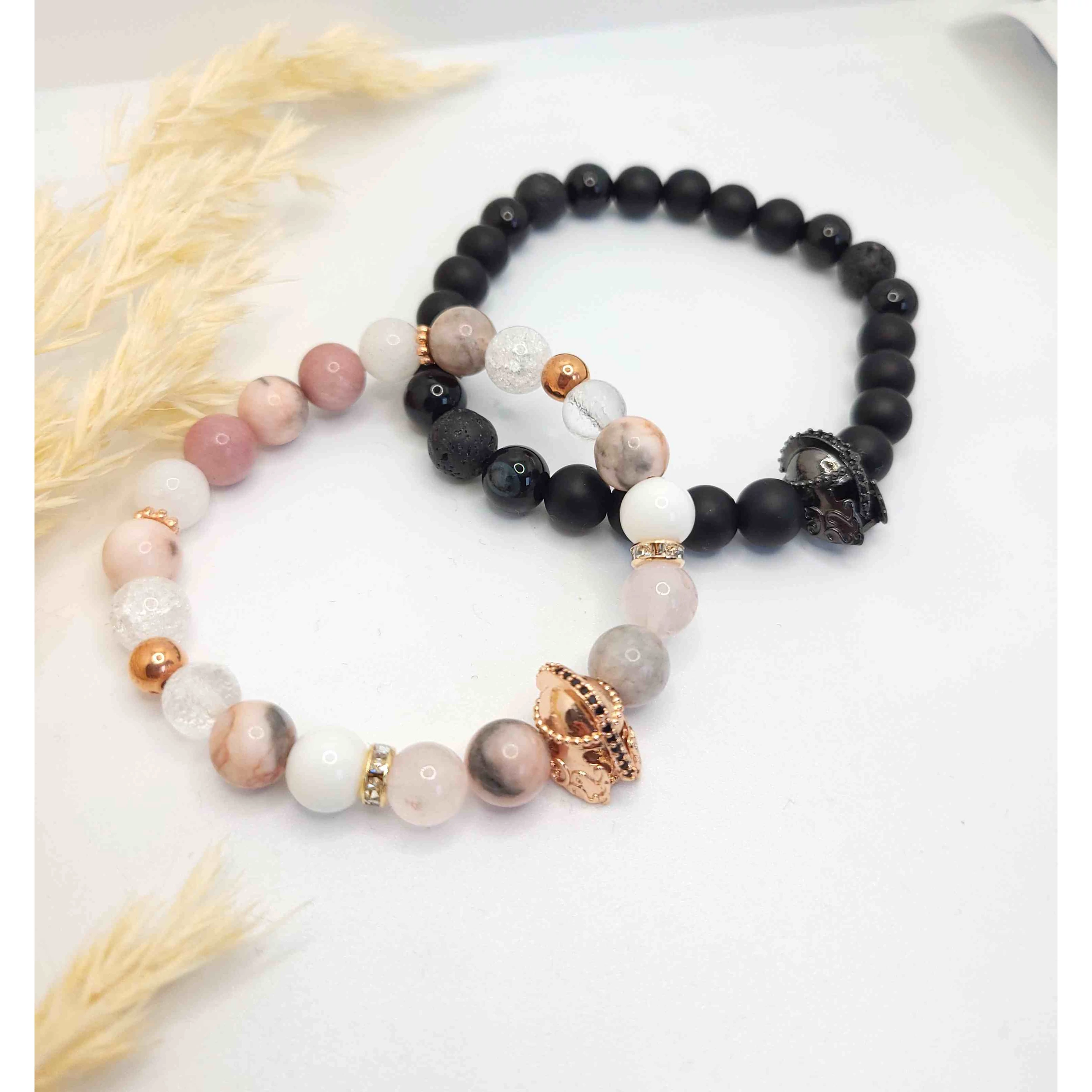 Szerelmi páros ásványkarkötő Luxury gladiátor medálokkal.
