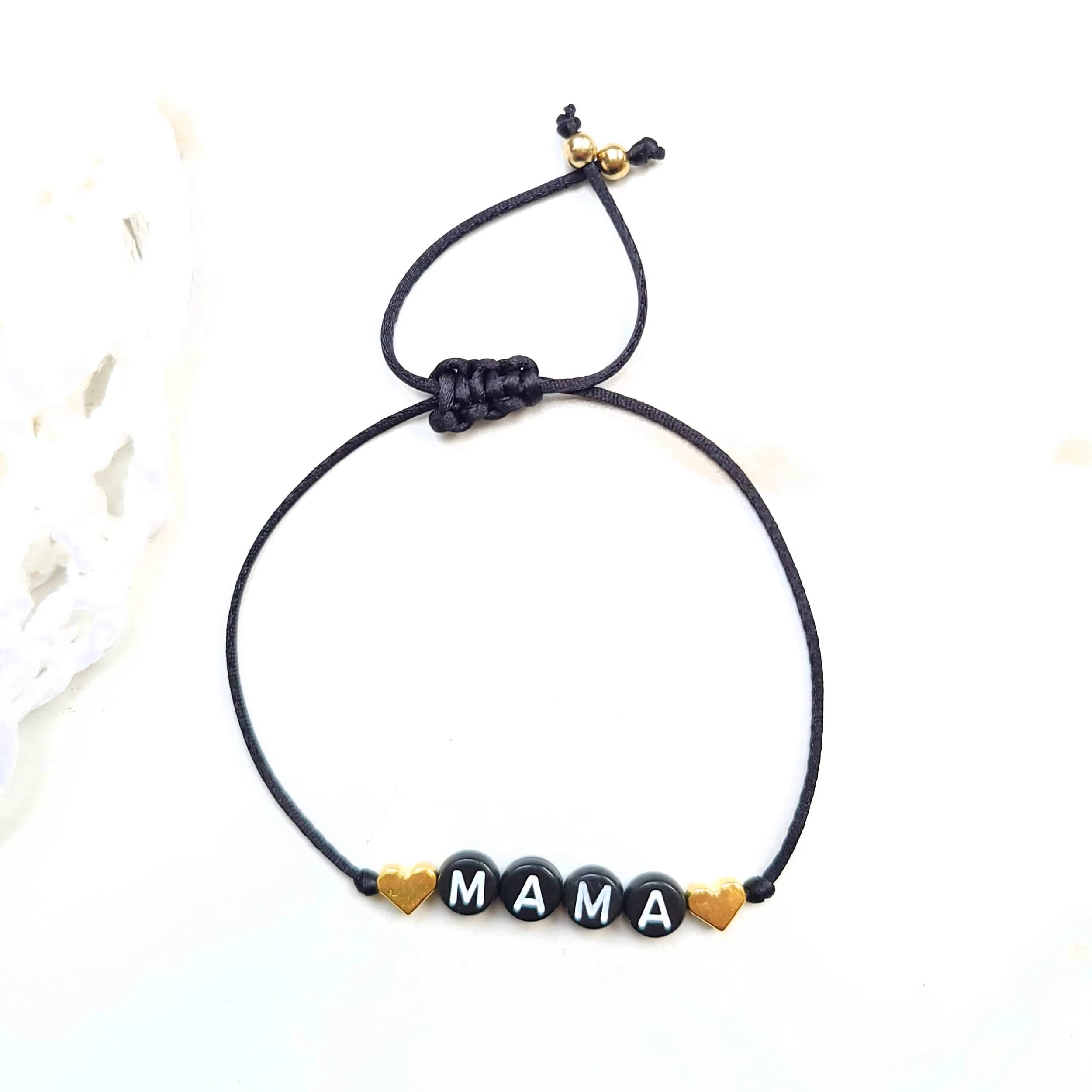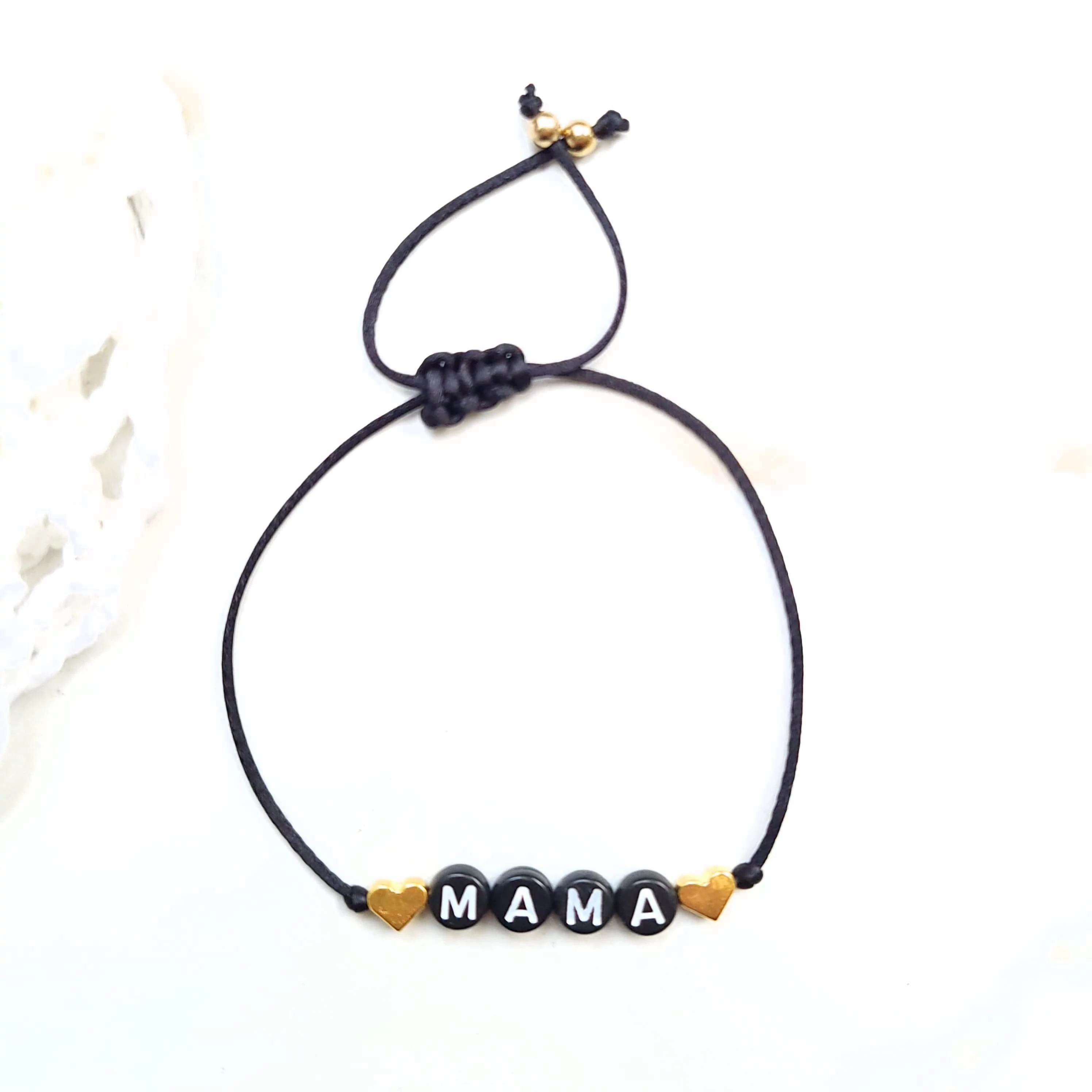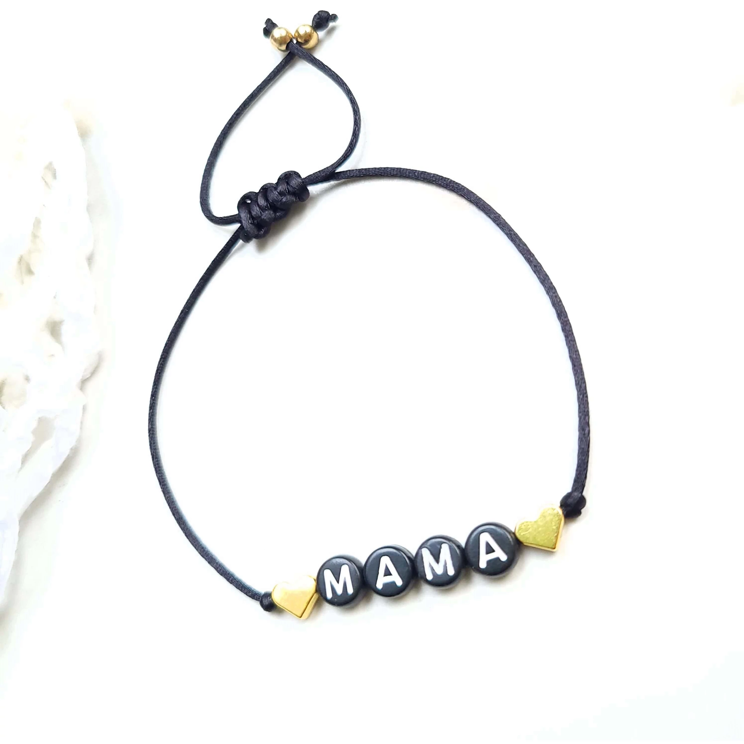 Gyönyörű egyedi tervezésű MAMA feliratos zsinór karkötő arany színű szívekkel. Amennyiben más névvel vagy felirattal kéred, a kosárba rakást követően a Pénztár/Összegzés menüpontban a megjegyzés rovatban add meg nekünk!