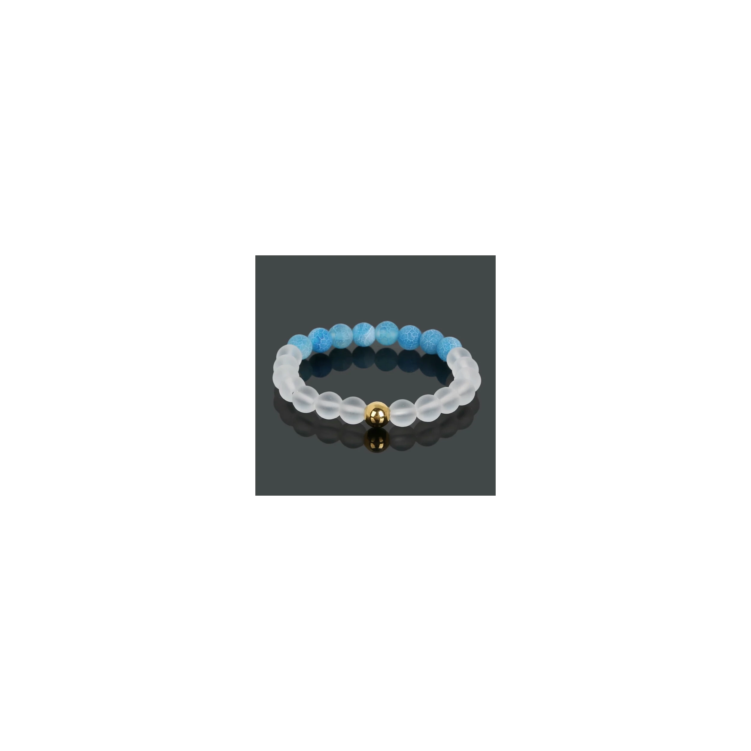 Ez egy egyedi tervezésű matt színes achát és matt hegyikristályból készült karkötő.
