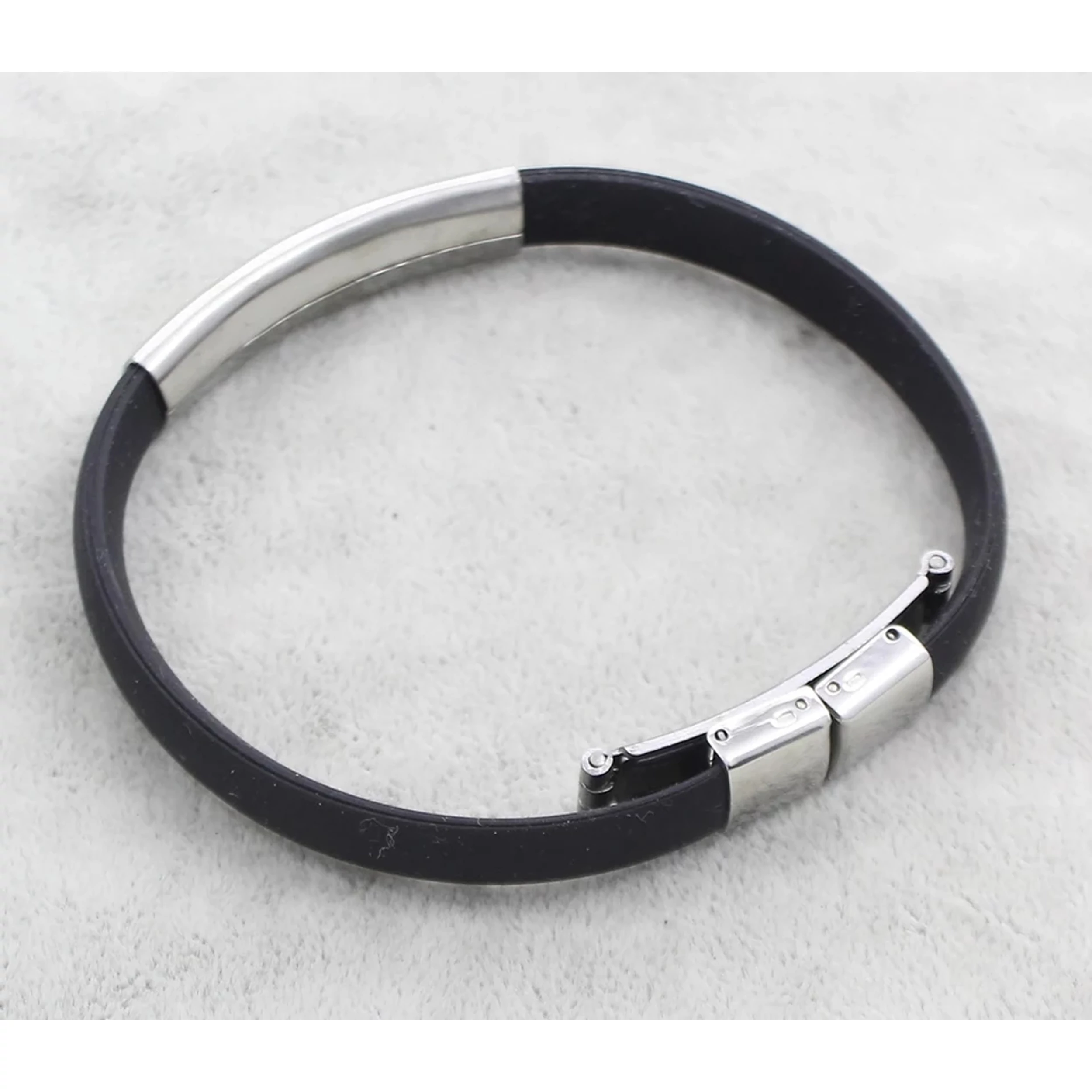 Nemesacélból és kaucsukból készült  karkötő.