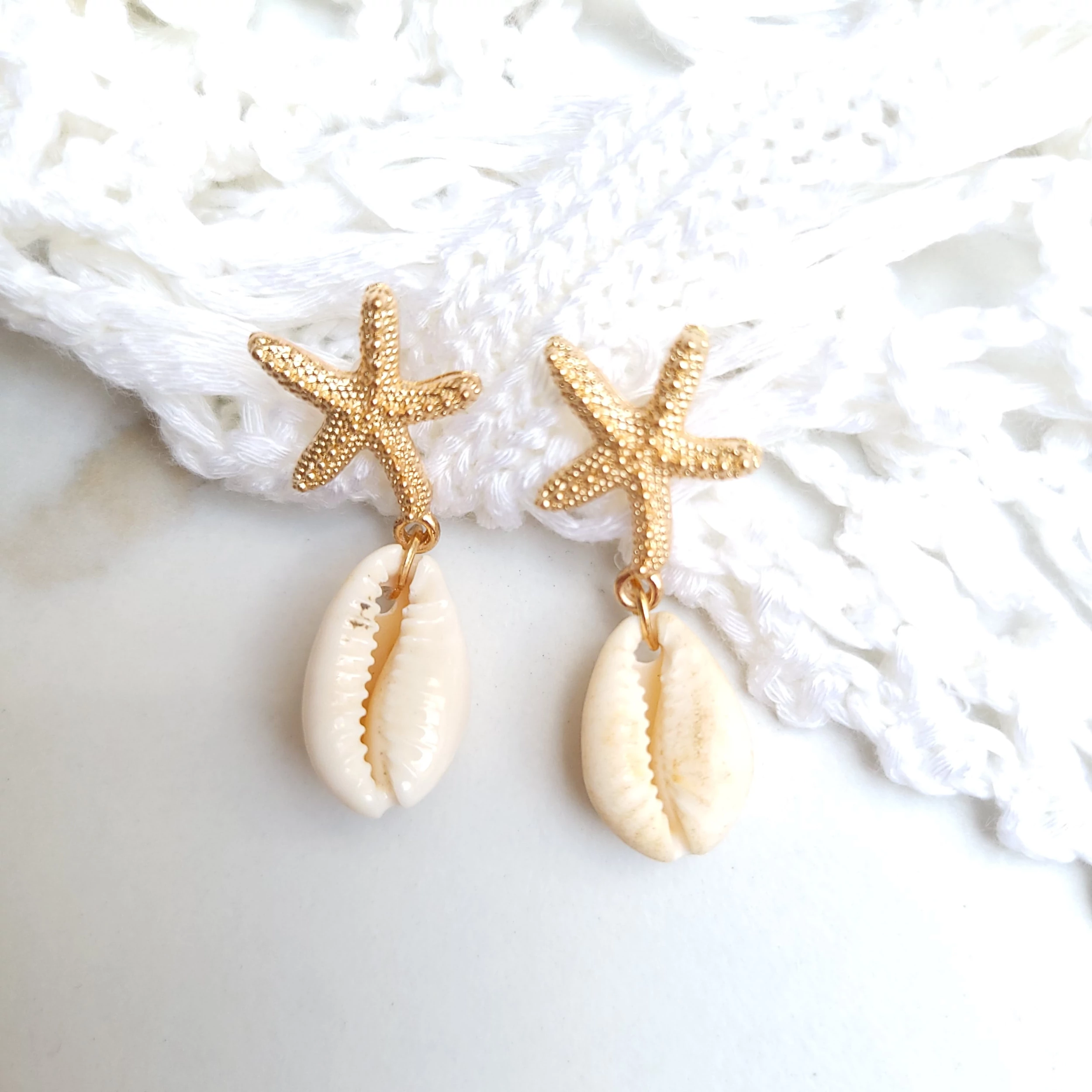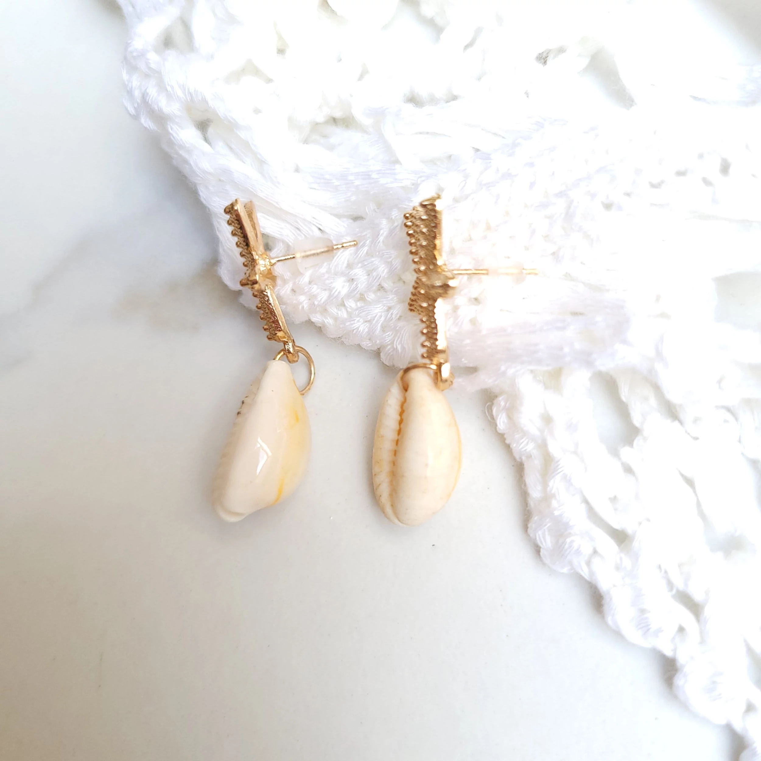 Rosegold csillag-kagyló, kézzel készített kagylóhéj fülbevaló.