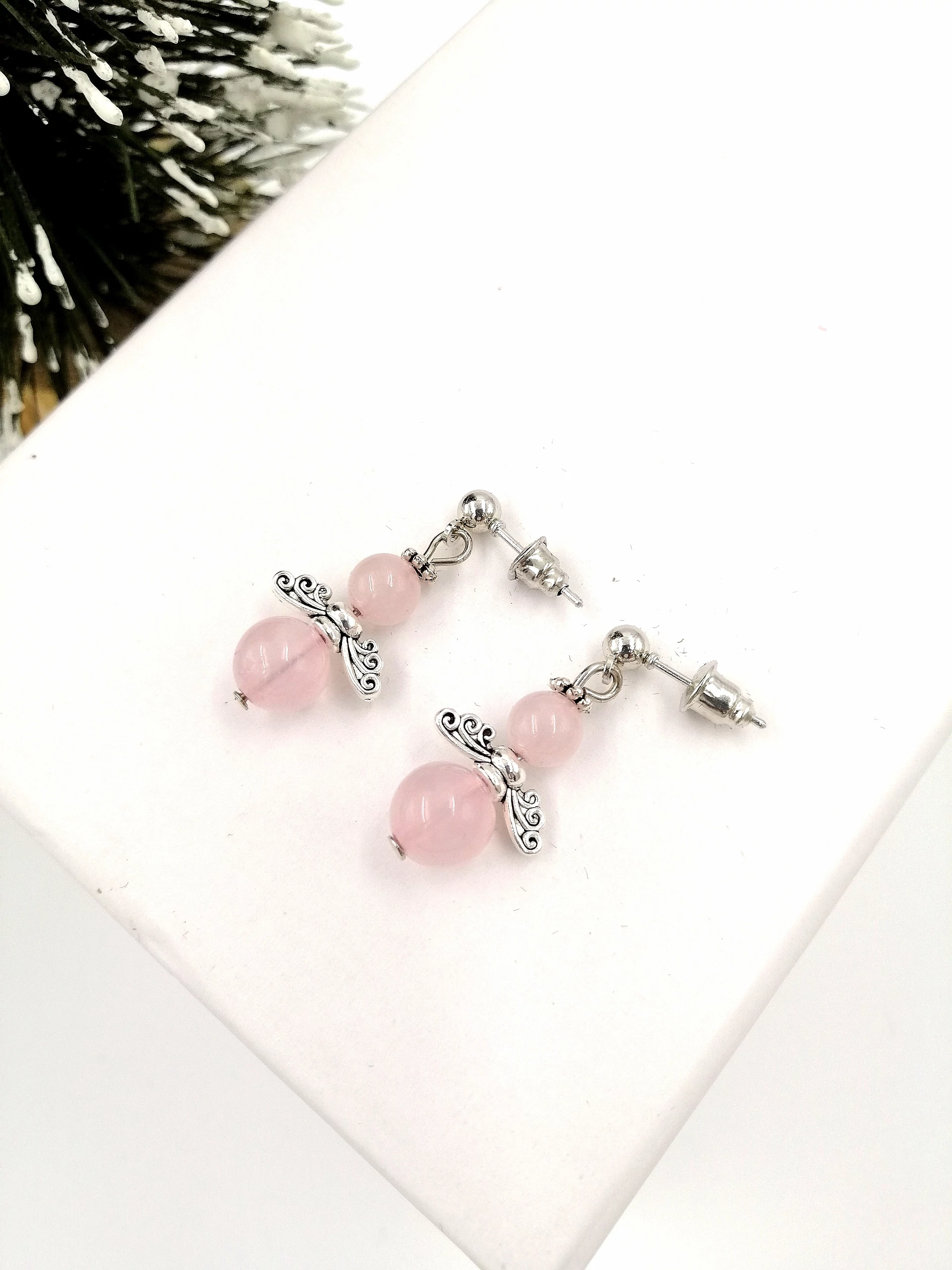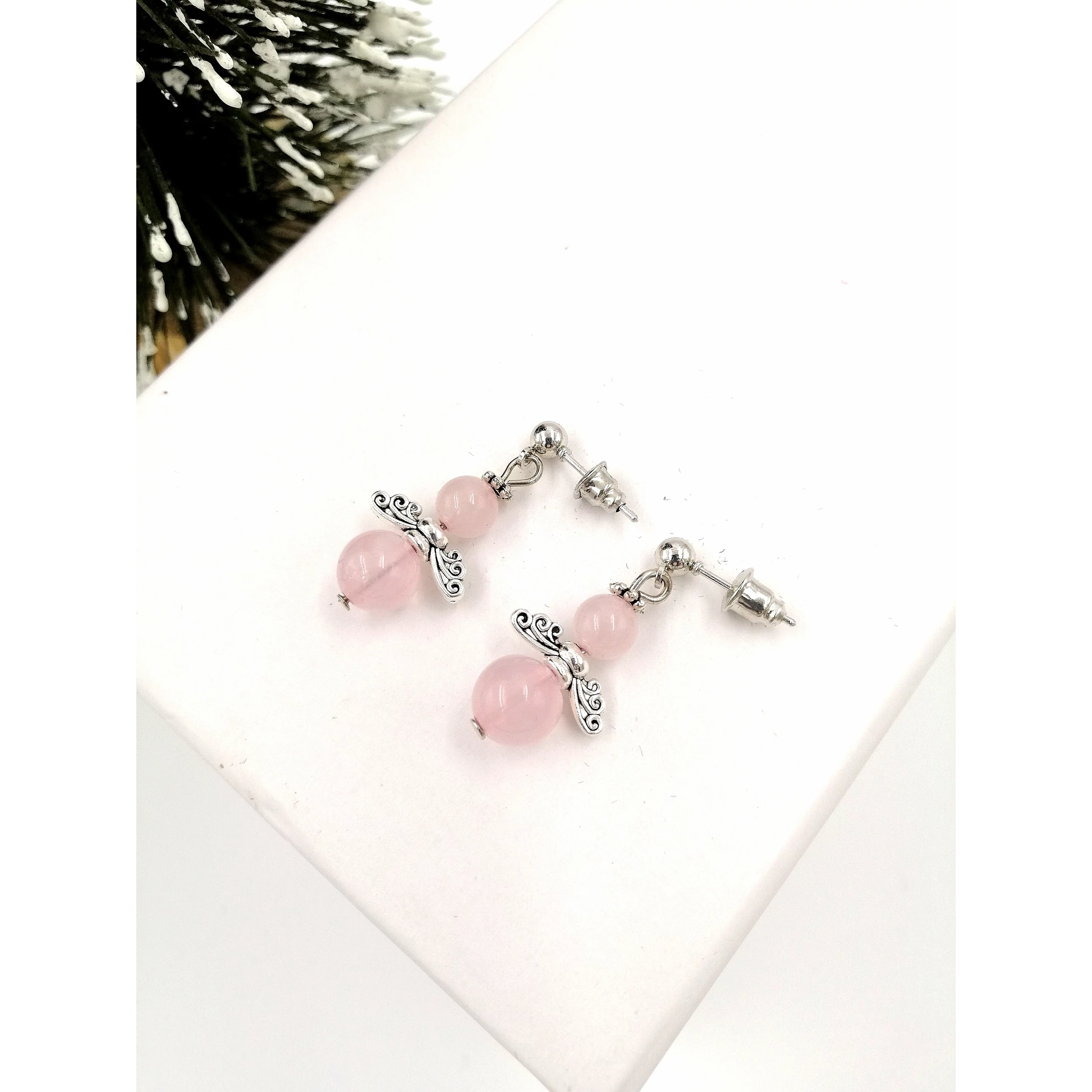 Rózsakvarc angyal fülbevalópár bedugós.  A fülbevalókat ajándék díszdobozban küldjük ki a vevőnek :)