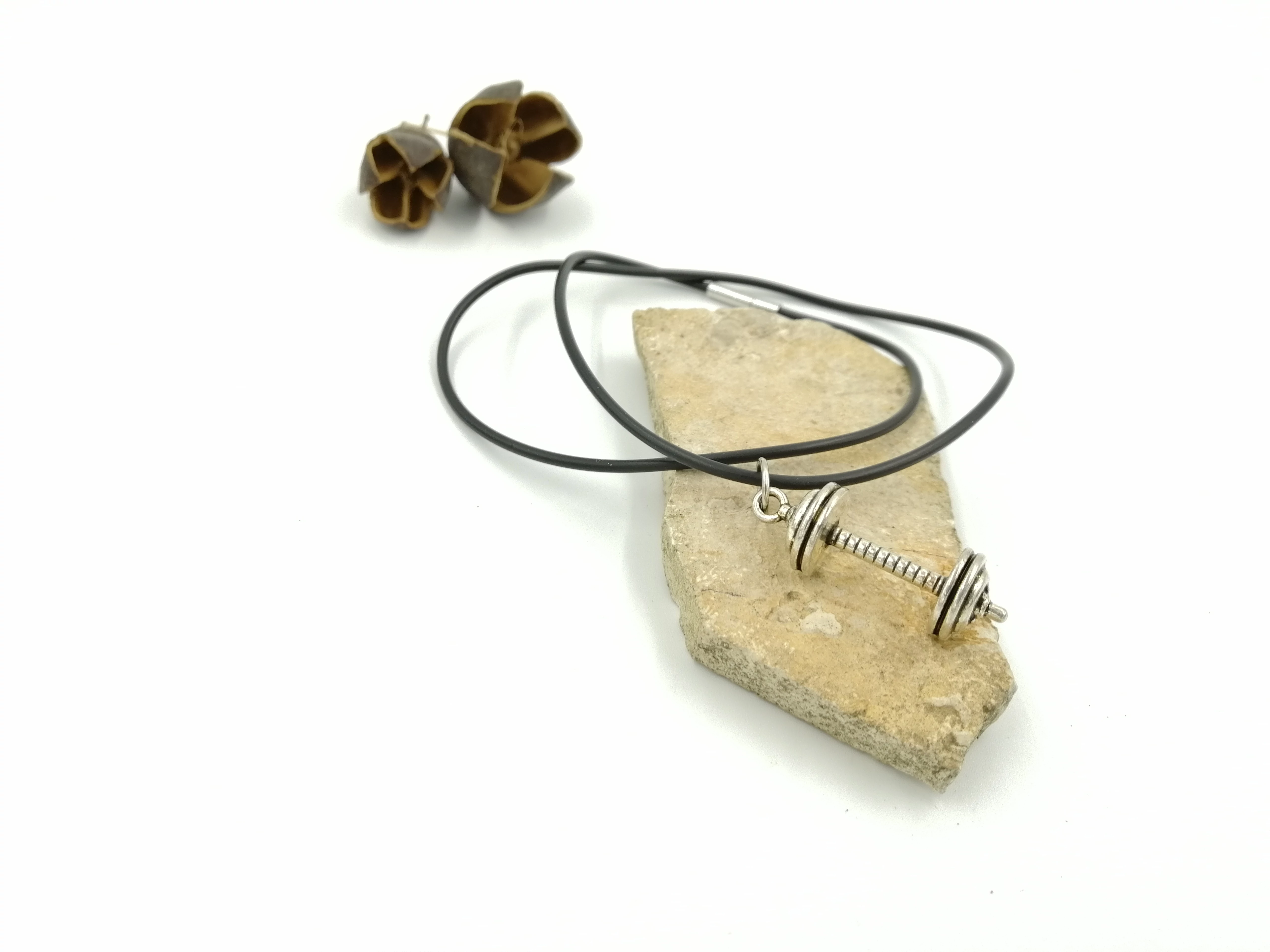Súlyzó medálos kaucsuk férfi nyaklánc.