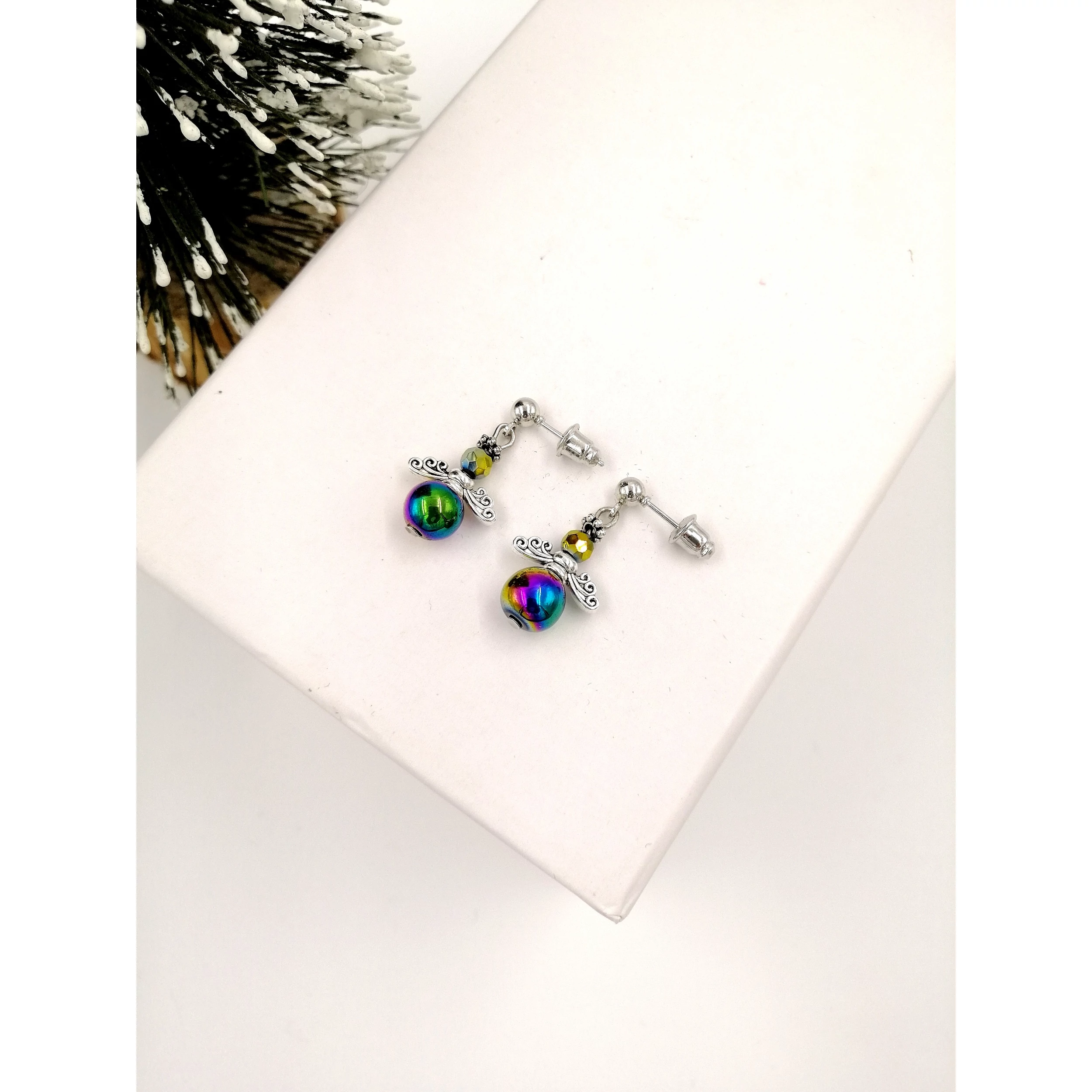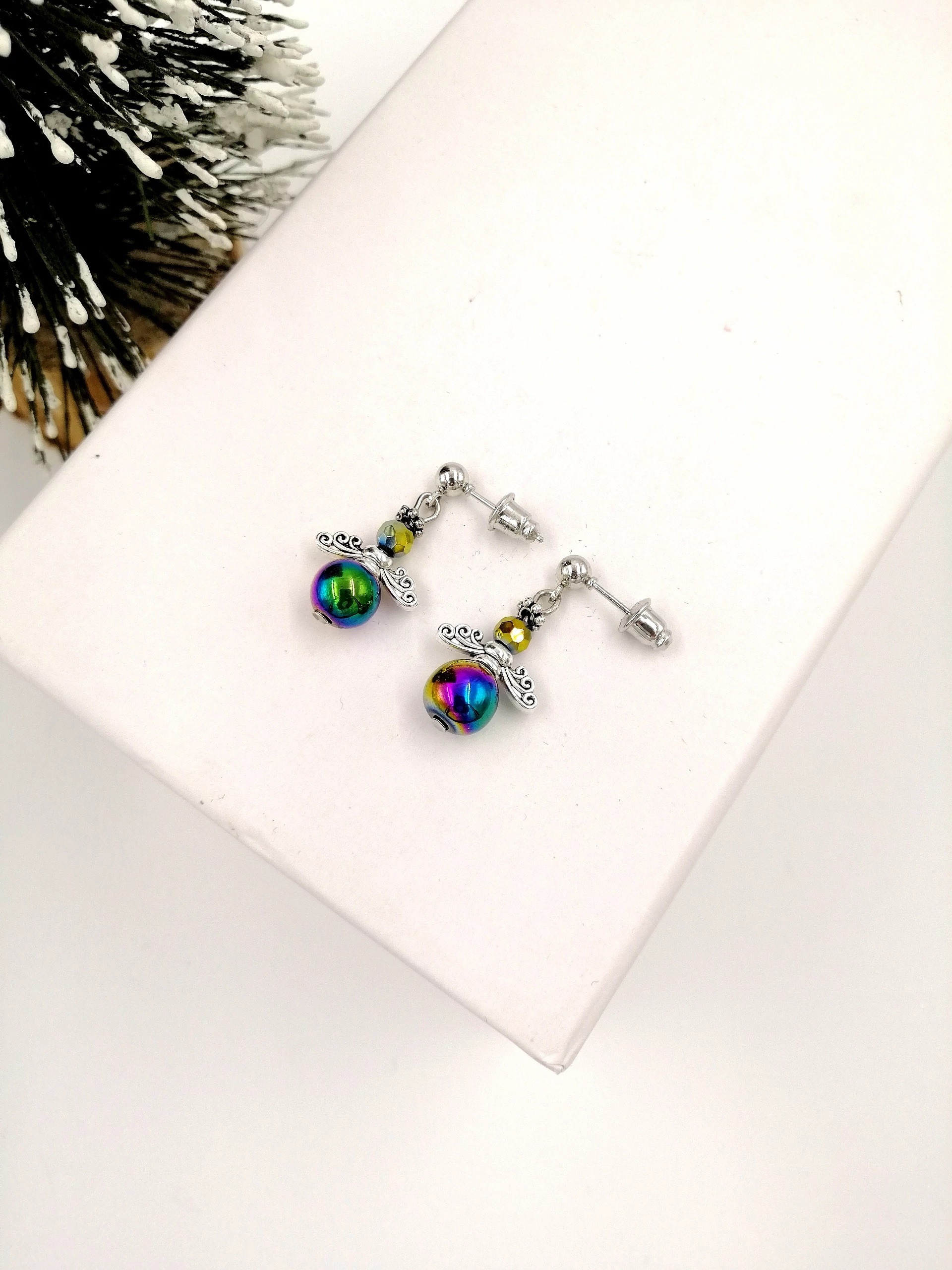 Szivárvány hematit angyal fülbevalópár bedugós. A fülbevalókat ajándék díszdobozban küldjük ki a vevőnek :)