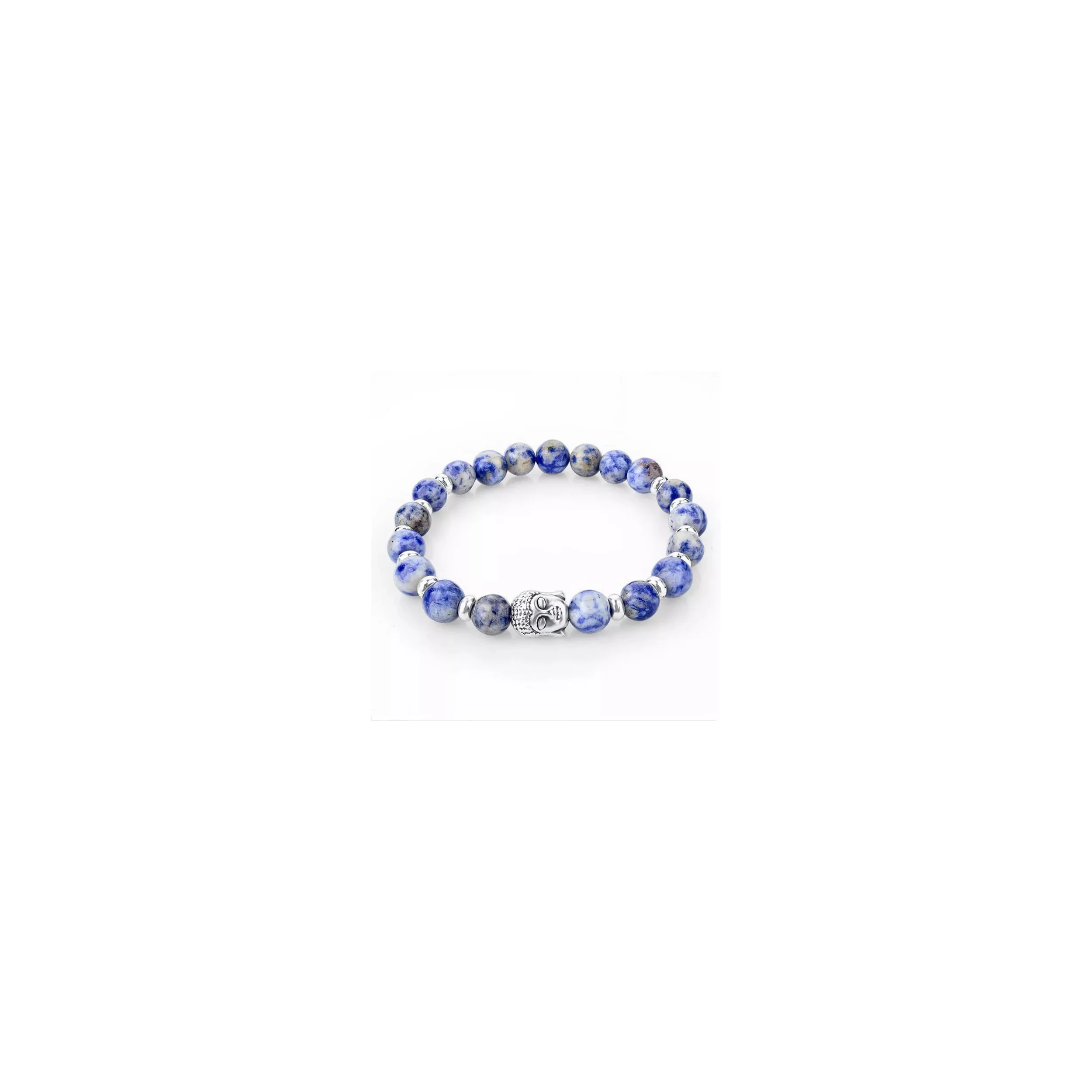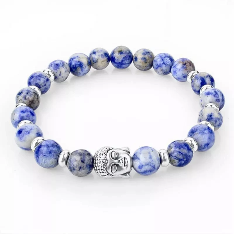 Gyönyörű egyedi szodalit buddha fejes ásványkarkötő  ezüst szín buddha medállal.