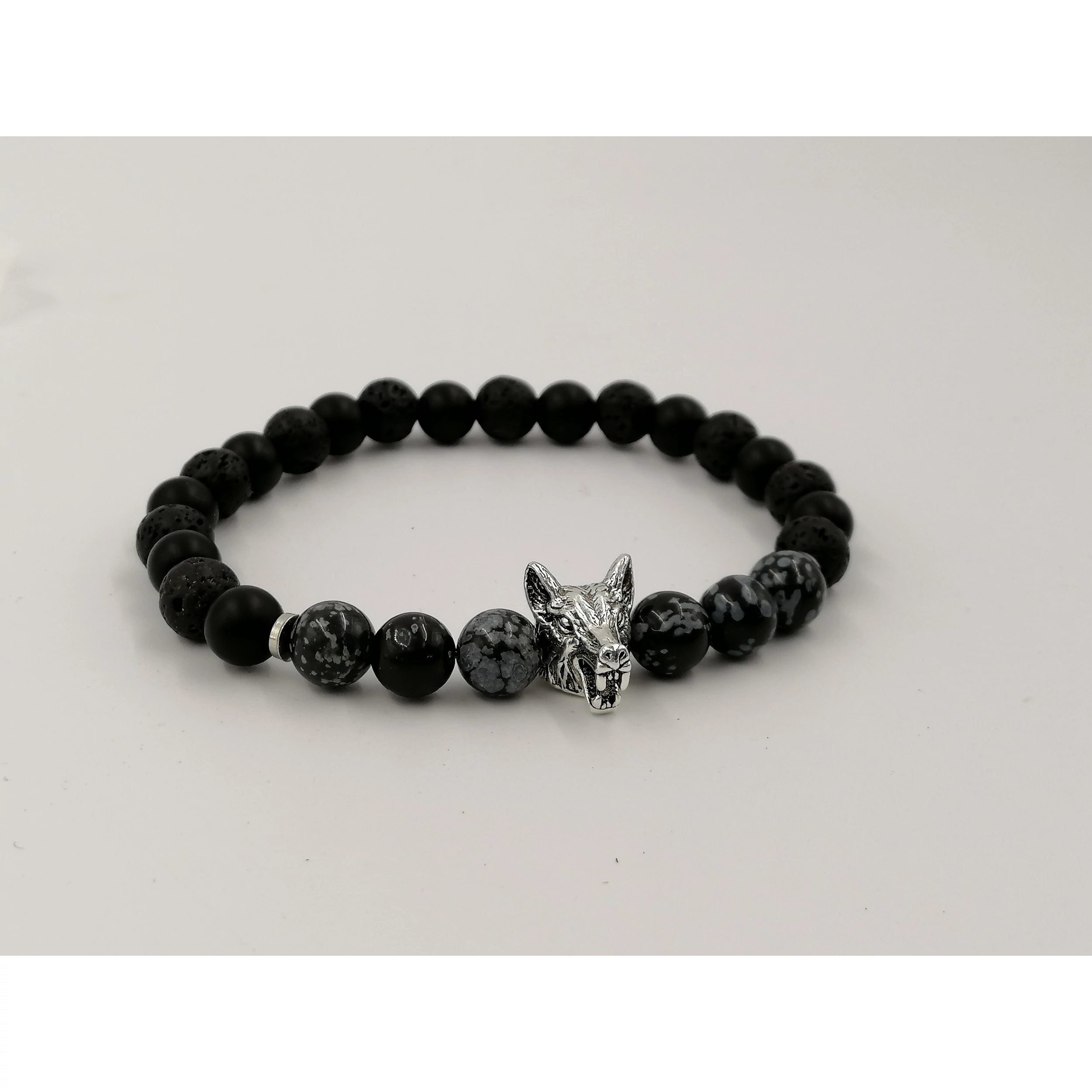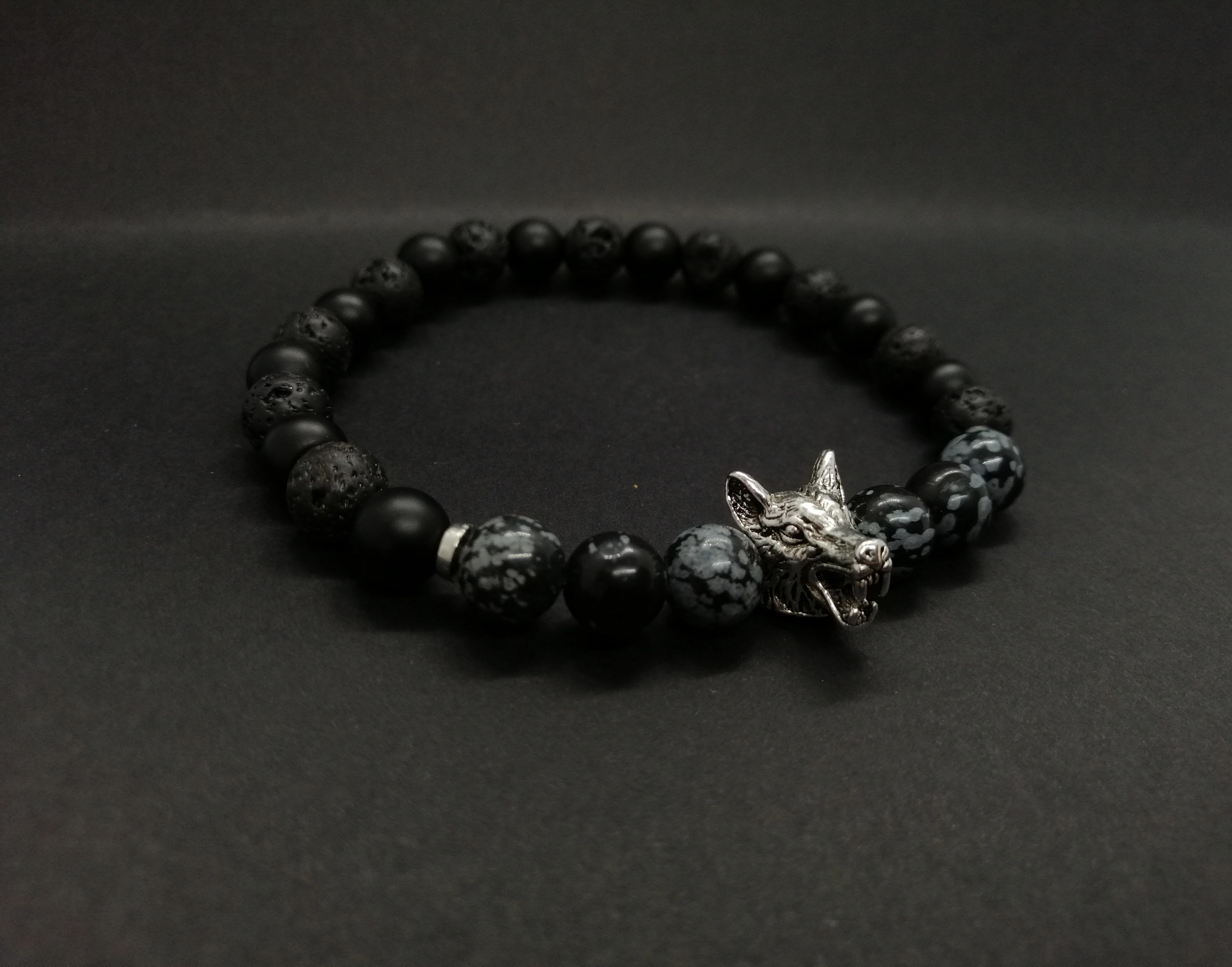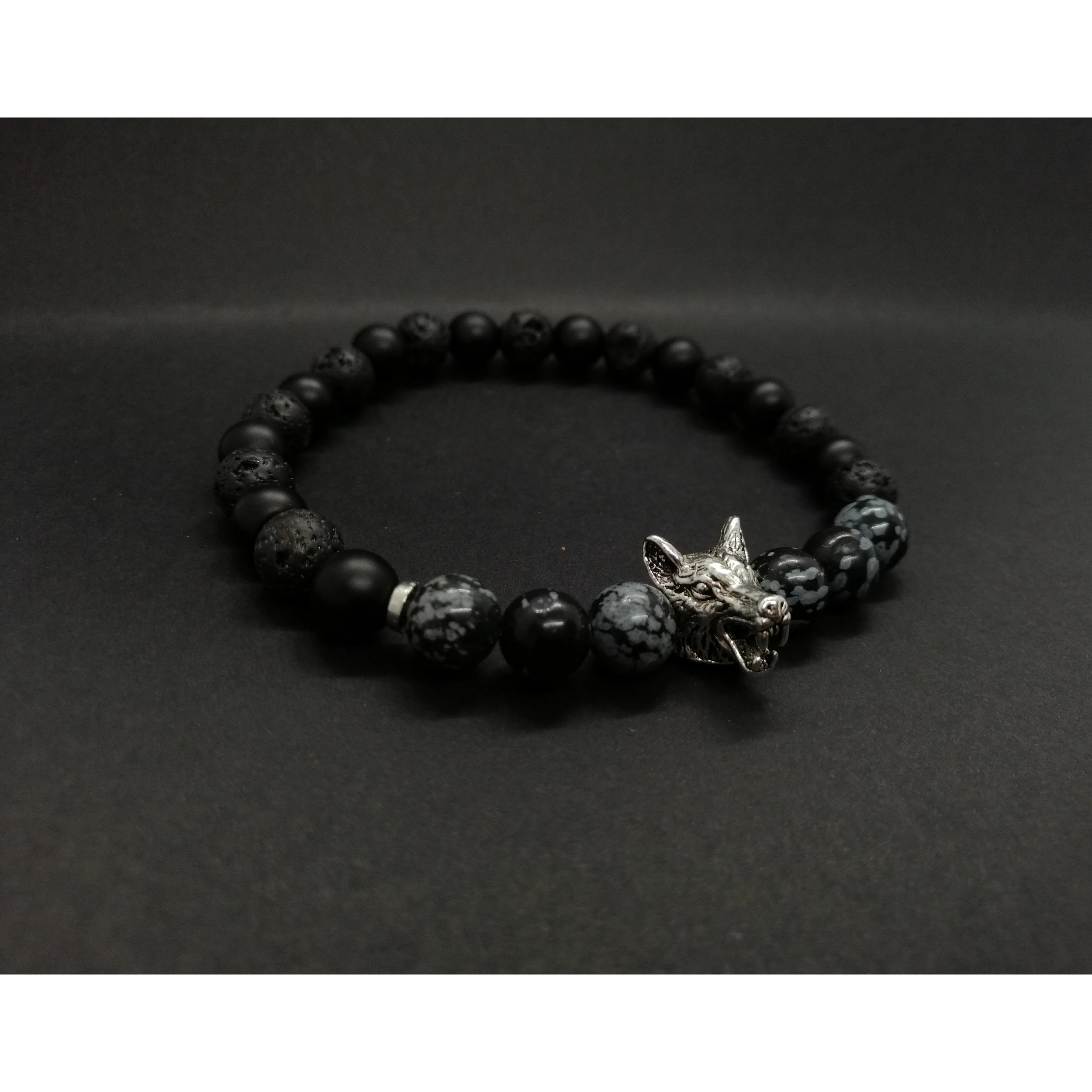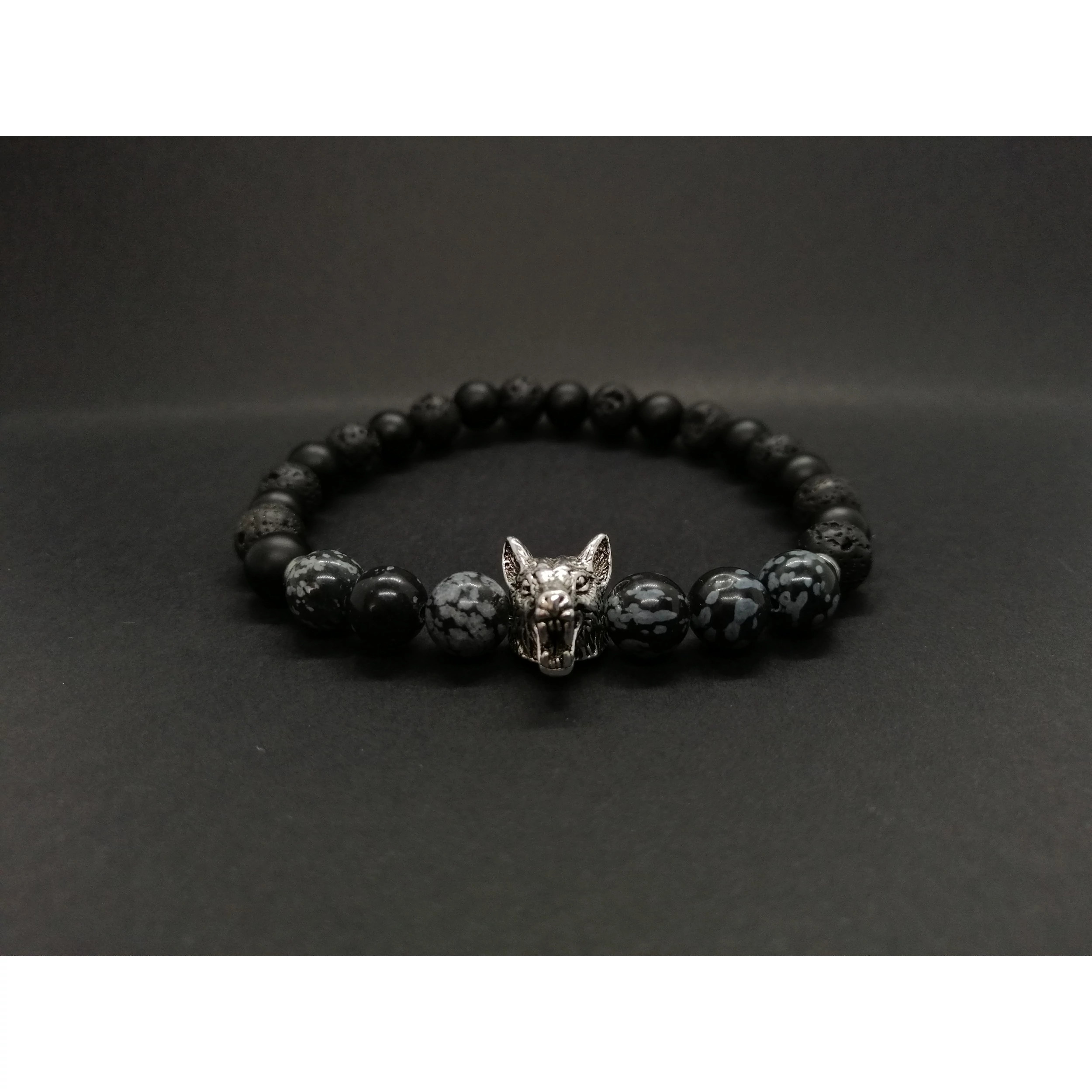Ez egy gyönyörű egyedi tervezésű 8 mm átmérőjű gyöngyökből készült ónix ás hópehely obszidián ásványkarkötő. (Az ár 1db karkötőre vonatkozik.)