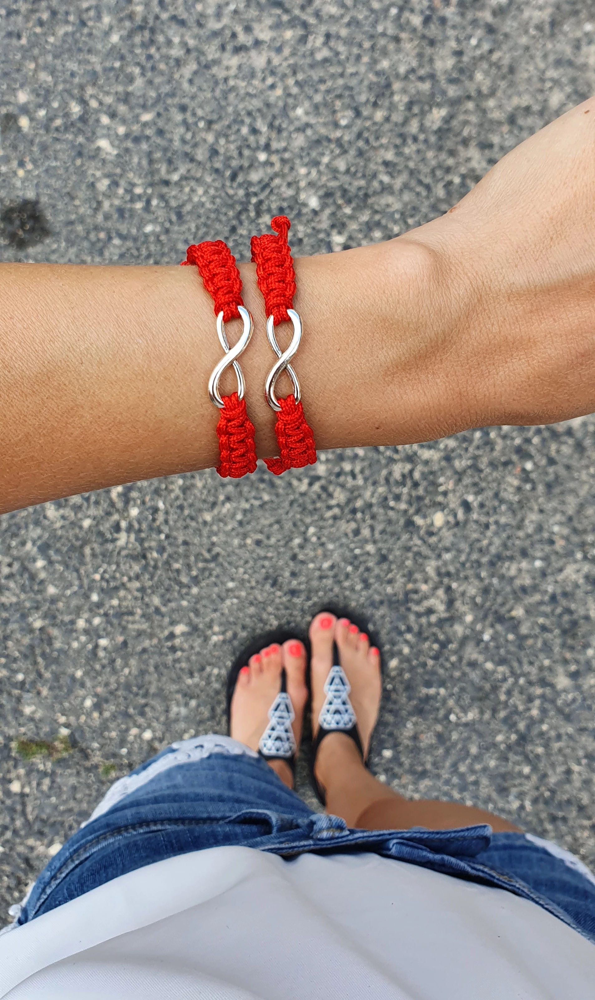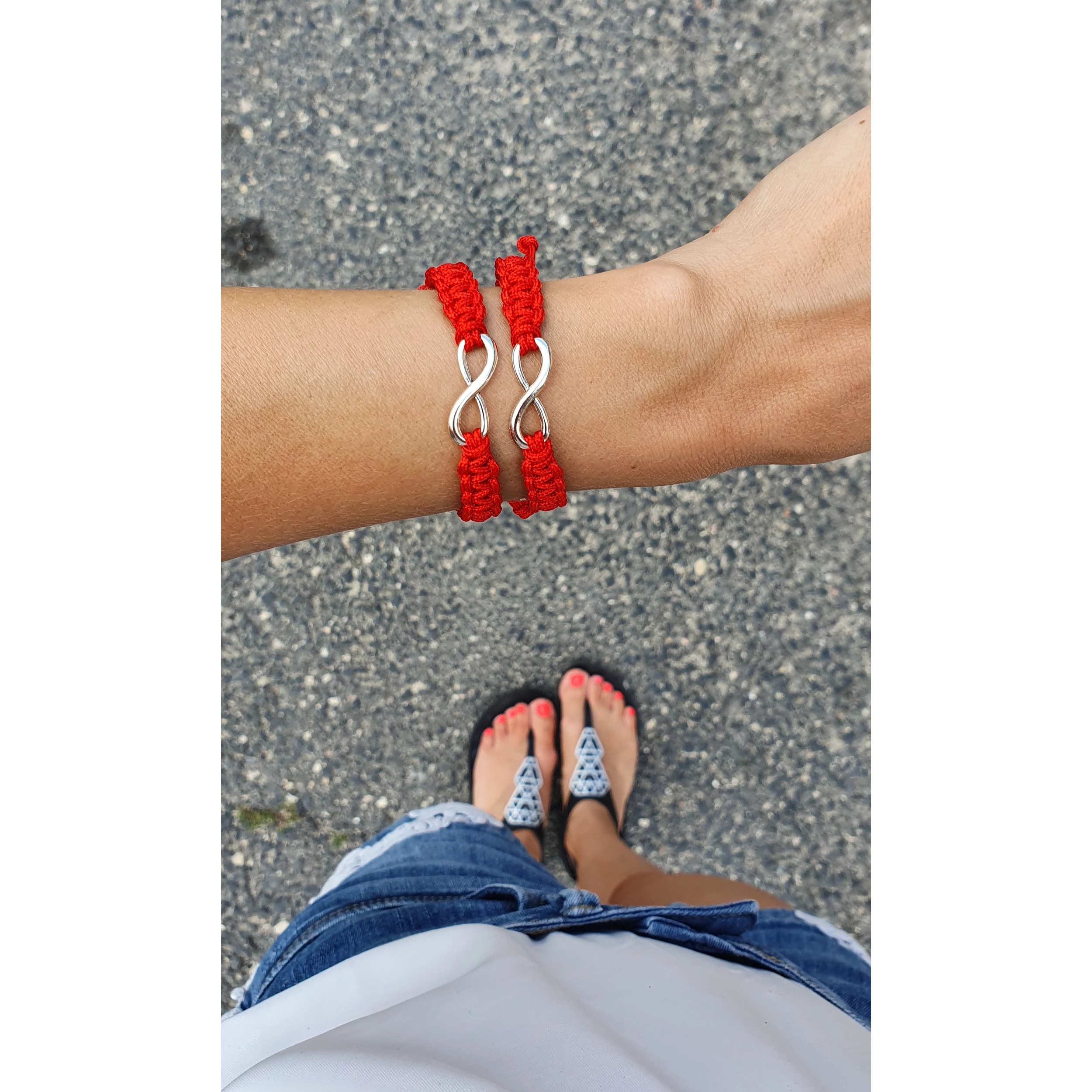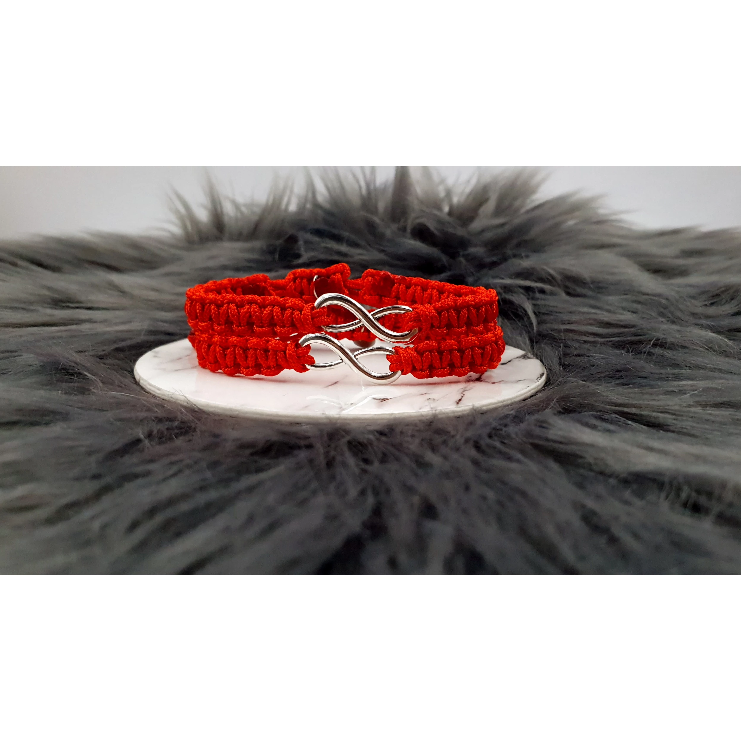 Végtelenjel piros zsinóros pároskarkötő,mely vékony parakord zsinórból font.